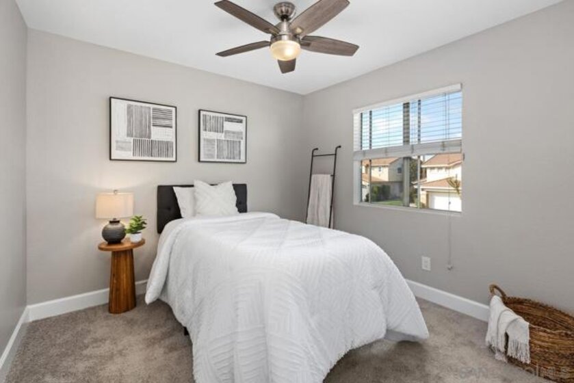 This beautiful, bright, and airy home sits on a quiet cul-de-sac in one of San Diego’s most desirable neighborhoods. Step inside to discover new LVP wood flooring downstairs, new carpet upstairs, and fresh paint throughout. A large skylight above the entryway fills the home with sunlight, highlighting the open contemporary layout and inviting atmosphere. The heart of the home is the gorgeous kitchen, featuring stainless steel appliances, a spacious center island, and striking teal-colored cabinets that add a touch of personality and style. It’s the perfect space for both entertaining and everyday living. Upstairs and down, you’ll find open, flexible living areas designed for comfort and connection. The home also includes a private laundry room and a two-car garage for ultimate convenience. Step outside to a private backyard, ideal for relaxing, dining, or hosting friends and family in a serene setting. Enjoy the best of Scripps Ranch living with top-rated schools, nearby parks, and easy access to outdoor recreation at Lake Miramar. You’re just minutes from shopping, dining, and coffee spots at Scripps Ranch Marketplace and along Mira Mesa Boulevard, with convenient freeway access for an easy commute anywhere in San Diego.