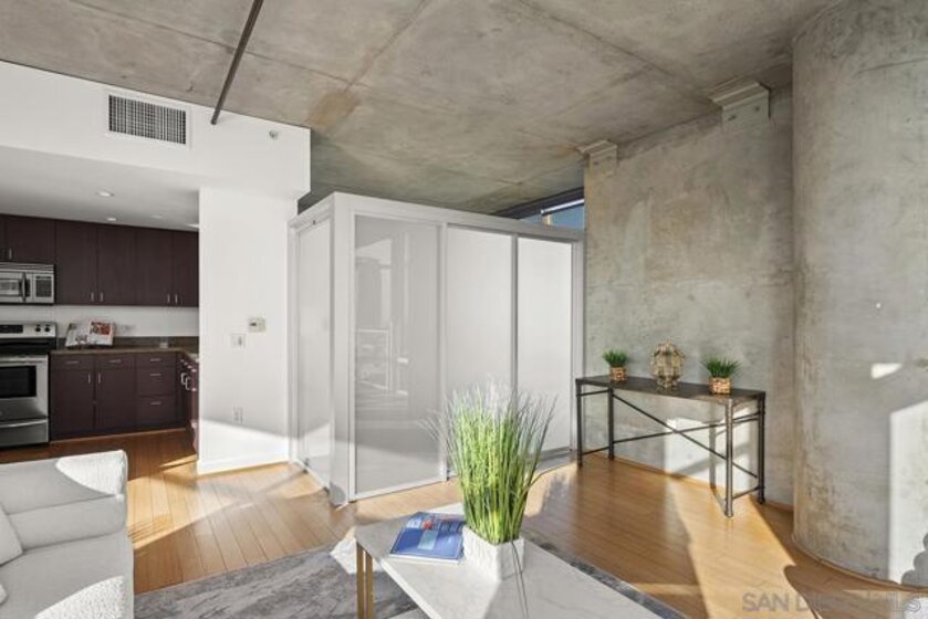 Welcome to the prime locale in Smart Corner, “The Point” floorplan, where walls of glass showcase panoramic views spanning Point Loma, the Pacific Ocean, San Diego Bay, and the Coronado Bridge from this premier south-facing residence. Perfectly positioned in vibrant East Village, this spacious 1-bedroom plus bonus area (1,422 sq. ft.) blends modern style with loft-inspired character, complete with original bamboo flooring, exposed concrete accents, and ductwork. You’ll love the open-concept layout flowing from the kitchen through the dining and living areas, all opening to a huge balcony, a true standout feature ideal for entertaining, dining al fresco, or simply relaxing while soaking in the sweeping skyline and coastal vistas. The kitchen features stainless appliances, recessed lighting, and an eat-at bar for casual dining. Additional highlights include an upgraded washer and dryer, two excellent, separate parking spaces (rare P1 and a P3). Whether you’re seeking a stylish city residence, a smart investment, or a flexible live/workspace, this home offers unmatched views with a central Downtown location! VA approved. Smart Corner is an all-encompassing hub of work, play, shop, and live! It is conveniently located near the 163 freeway, I-5, Highway 94, Petco Park, the Gaslamp Quarter, San Diego City College, and Balboa Park. A trolley station located below the development ensures Smart Corner has all an urban dweller could want. Amenities include 20th floor roof-top sun deck with forever views of the city skyline, 10-person hot tub, barbecue area, wet bar, 2nd floor Fitness Center, PLUS on-site management, and security.