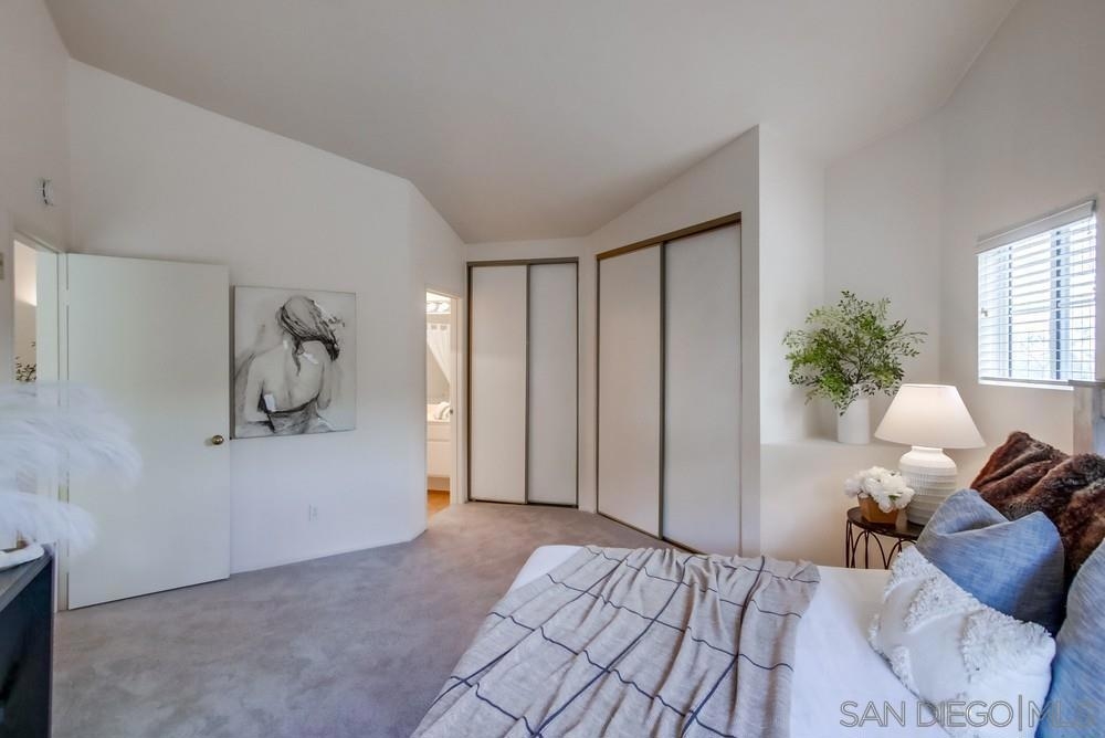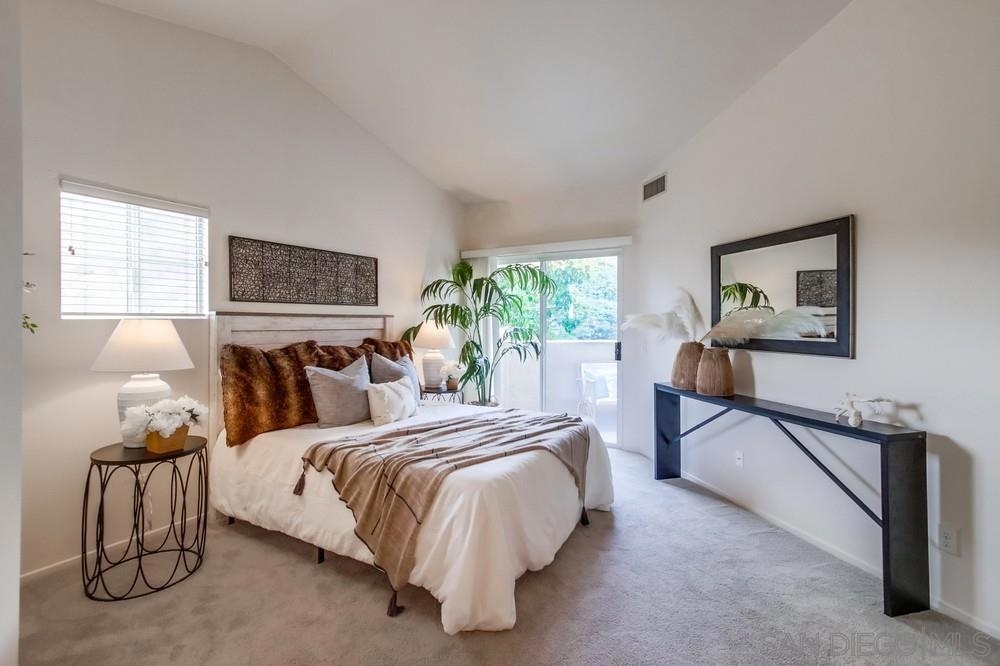 Situated in the highly desirable Scripps Ranch community, this stunning third-floor condo offers 2 spacious bedrooms, 2 bathrooms, and a 2-car garage. Step inside to vaulted ceilings, carpet, and elegant tile flooring in the entryway. Every room is designed with comfort in mind, with each bedroom and the living room opening to private balconies—perfect for enjoying your morning coffee or evening breeze. The kitchen is a chef’s delight, featuring stainless steel appliances, a gas stove, dishwasher, built-in microwave, and plenty of storage space. Convenience is key, with an in-unit washer and dryer, ample storage throughout, and a recently upgraded gas water heater installed just a year ago. This move-in-ready condo offers unbeatable value as the lowest-priced home in the complex, with additional highlights including amazing views that will take your breath away. The community enhances your lifestyle with access to two sparkling pools and spas, ideal for relaxing or entertaining. Located just minutes from top-rated schools, shopping, dining, Mira Mar Lake, and with easy access to the I-15, this home combines comfort, style, and unbeatable convenience—ideal for anyone looking to enjoy the best of Scripps Ranch living.