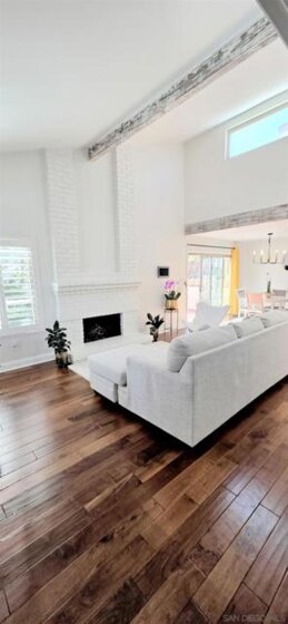 This single-story attached end unit in the award-winning Poway School District is tucked into a quiet, resort-style home, well-maintained hillside community. Feels like your always on vacation. Light and bright, this 3-bedroom, 2-bath home feels like a detached property with no one below or above, only 1 shared wall. It offers an open layout, updated lighting, vaulted ceilings, a gorgeous fireplace, and a private patio. Spacious master bedroom with a large walk-in closet, ensuite bath with double vanities, and stunning views. Includes a laundry room, central A/C, an attached 2-car garage, and access to resort-style amenities such as a pool, spa, tennis courts, and racquetball. Some repairs and upgrades have been done within the last few months. Views from every bedroom and living room. New refrigerator, washer and dryer included, ready to move in. Surrounded by hiking trails, parks, and top-rated Poway Unified schools, and just minutes from shopping, dining, and freeway access—this is the perfect blend of comfort, style, and location!