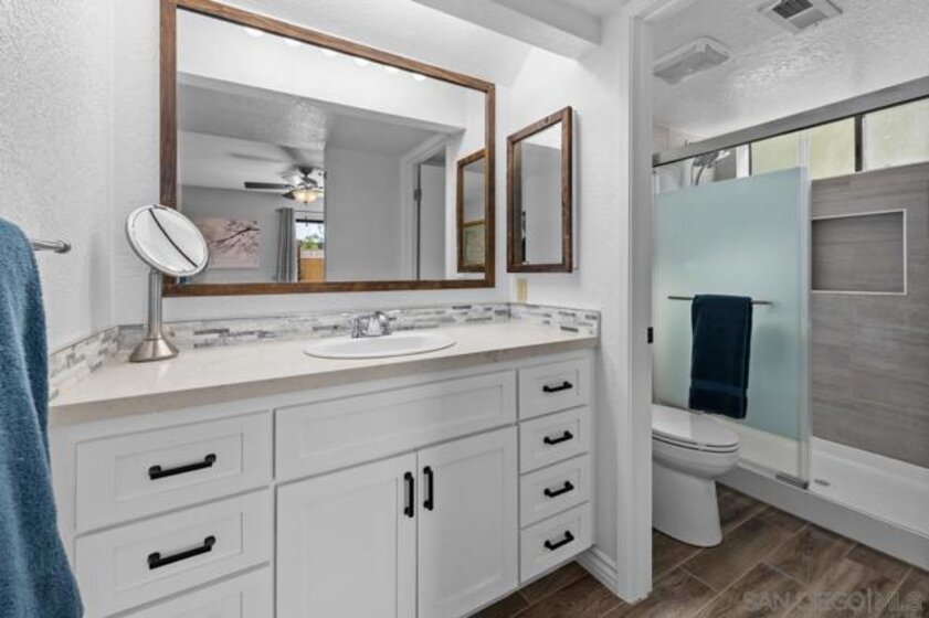 This Bernardo Heights end-unit townhome checks all the boxes: walkability, a convenient central location, great schools, incredible HOA amenities, direct garage access, plentiful parking, and full-size laundry hookups. Light and bright throughout, the main level features an open living and dining area, a beautiful kitchen, a remodeled powder room, a spacious front porch, and a patio off the living room with sunset views and easy indoor-outdoor living. The lower level includes two comfortable ensuite bedrooms with remodeled bathrooms, plus a hallway office nook and oversized storage closet. The primary suite opens to its own private outdoor space with a garden bed and trellis, offering a charming area to personalize. Set within the highly rated Poway Unified School District, this home is close to shopping, dining, schools, and close freeway access. The HOA provides remarkable value, with coverage for exterior maintenance, roof, balcony, patio, water, trash, pest and termite service, plus access to Bernardo Heights Community Center and Lucido Park amenities, including pools, fitness, spa, tennis, pickleball, basketball, playgrounds, trails, and private park spaces. With thoughtful features, generous amenities, and easy access to daily essentials, this home offers a lifestyle that is both practical and inviting.