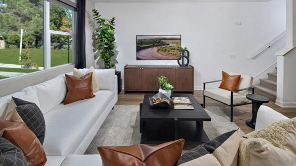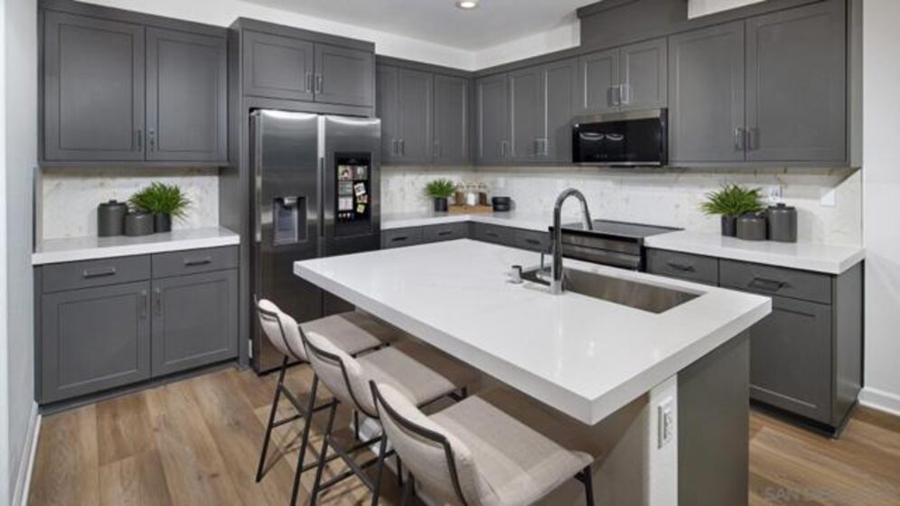 On the second floor of this brand-new three-story townhome, an inviting open floorplan seamlessly combines the kitchen with the living and dining areas, and a deck offers convenient outdoor access off the main living space. Two bedrooms can be found on the third floor, including the luxe owner’s suite, complete with a walk-in closet and private bathroom. Laurel is a collection of brand-new townhomes for sale within The Trails masterplan in San Diego, CA. Residents enjoy a great central location and easy access to I-15 and 56 freeways for simplified commutes and getting around. The community is conveniently close to shopping at Carmel Mountain Ranch and UTC, 4S Ranch, Del Sur and more. Students will attend schools within the Poway School District.