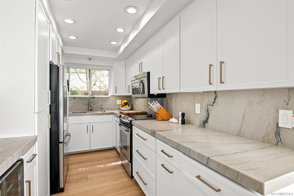 Why vacation once a year when you can wake up to it every day? This dreamy, designer-renovated bayfront escape defines coastal chic. Fully remodeled last year with stylish finishes that deliver hotel vibes—minus the checkout time. Located in the front tower’s elevated first floor, this home offers front-row bay views with added privacy. From the living room or serene primary suite, enjoy sailboats, paddleboarders, volleyball matches, colorful sunsets, and even SeaWorld fireworks. Inside, luxury vinyl plank floors, a quartzite kitchen, and a spa-inspired bath are wrapped in soft, sophisticated tones. Electronic blinds set the mood for sunrises, naps, or sunset soirées. A cozy fireplace adds warmth—perfect for unwinding or entertaining. Slide open the doors to your private balcony for direct access to the pool, spa, and bay—ideal for hosting, dipping into the water, or strolling the boardwalk. You're also minutes from Fanuel Park, the Catamaran, and both Mission and Pacific Beach. Bonus perks: two side-by-side parking spots near the unit, plus two private, locked storage areas for your beach gear. Located in one of Sail Bay’s most coveted gated communities with a sparkling saltwater pool and spa. With a 30-day rental minimum, it’s quiet, exclusive, and ideal as a seasonal escape or full-time dream home. This isn't just a place to live—it’s a place to love. Why vacation once a year when you can wake up to it every day? This dreamy, designer-renovated bayfront escape is the definition of coastal chic. Fully renovated last year with all the style and sparkle to give the feel of hotel vibes without the checkout time. Tucked into the front tower’s elevated first floor, you’re perfectly positioned for front-row bay views and a little privacy. From your living room or dreamy primary suite, watch the sailboats drift by, volleyball games, paddleboarders cruising, vibrant sunsets and even SeaWorld fireworks lighting up the night. Yep, this is your view. Inside, you’ll find luxury vinyl plank floors throughout, a quartzite-clad kitchen, and a spa-inspired primary bathroom, all wrapped in soft, sophisticated tones that make it easy to kick off your sandals and stay awhile. Electronic blinds set the scene with one tap; morning sunrises, afternoon naps, or sunset soirées. A cozy fireplace in the living room adds warmth and charm—perfect for snuggling up with a book after a beach stroll or hosting a wine night with friends. Slide open the doors to your private balcony, where you’ll find direct access to the pool, spa, and the bay itself—making it ridiculously easy to entertain, take a dip, or stroll the boardwalk. You’re also just minutes to Fanuel Park, the iconic Catamaran Hotel, and a short trip to Mission or Pacific Beach. Brunch, beach, boutique coffee shops—this is where locals want to be. Perks that make living here even better; two side-by-side parking spots conveniently located right by your exit and steps to the unit. Two private, locked storage units are ideal for stashing the beach toys and bikes. Located in one of Sail Bay’s most coveted and secure communities, that features a sparkling saltwater pool and spa for that daily vacation vibe. 30-day rental keeps the short term rentals away, it’s ideal for part-time living, a seasonal escape, or your primary dream home.This isn't just a place to live—it’s a place to love.