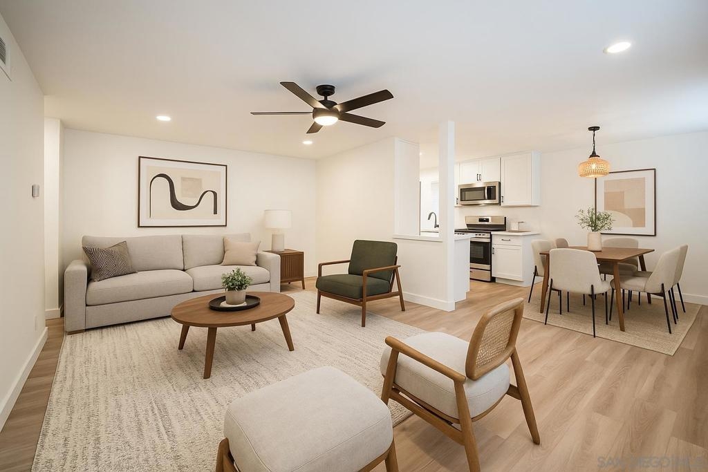 Welcome home to this beautifully remodeled 2-bedroom, 1-bath condo, where modern design meets everyday comfort. The open-concept layout is bathed in natural light, creating a warm and inviting living space ideal for both relaxing and entertaining. The sleek, contemporary kitchen showcases stainless steel appliances, quartz countertops, and custom cabinetry, offering both style and functionality. Each bedroom is generously sized and thoughtfully designed to provide a comfortable retreat. Conveniently located near major freeways, this home makes commuting a breeze while keeping you close to everything San Diego has to offer—dining, shopping, and entertainment. Whether you’re a first-time buyer or seeking a smart investment opportunity, this condo delivers the perfect balance of modern living and prime location. Some Images Have been virtually staged and contain original image next to it