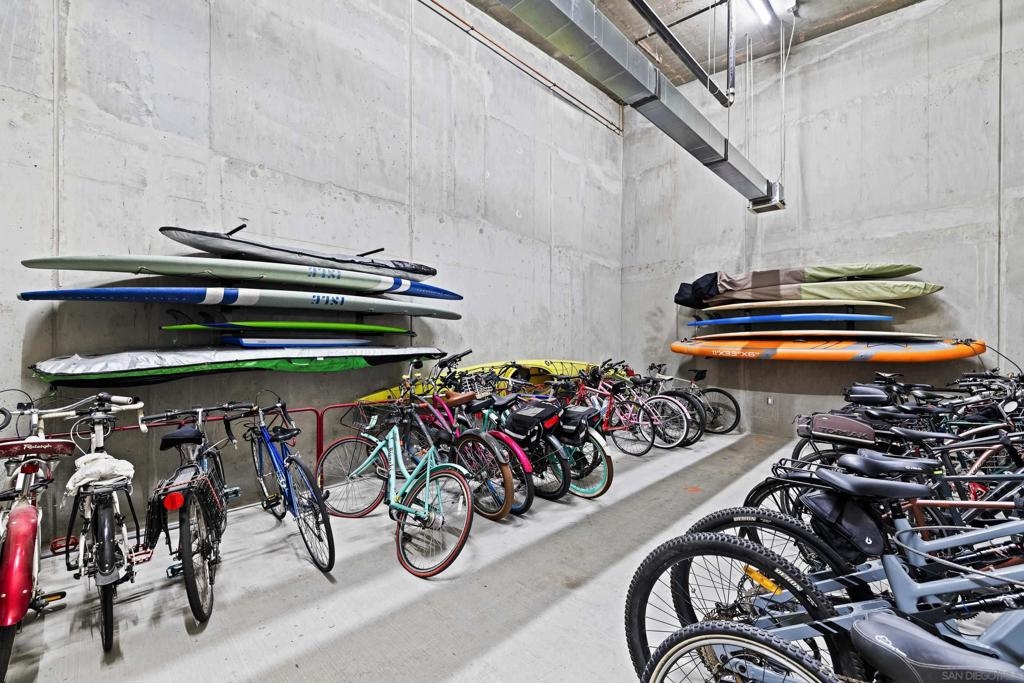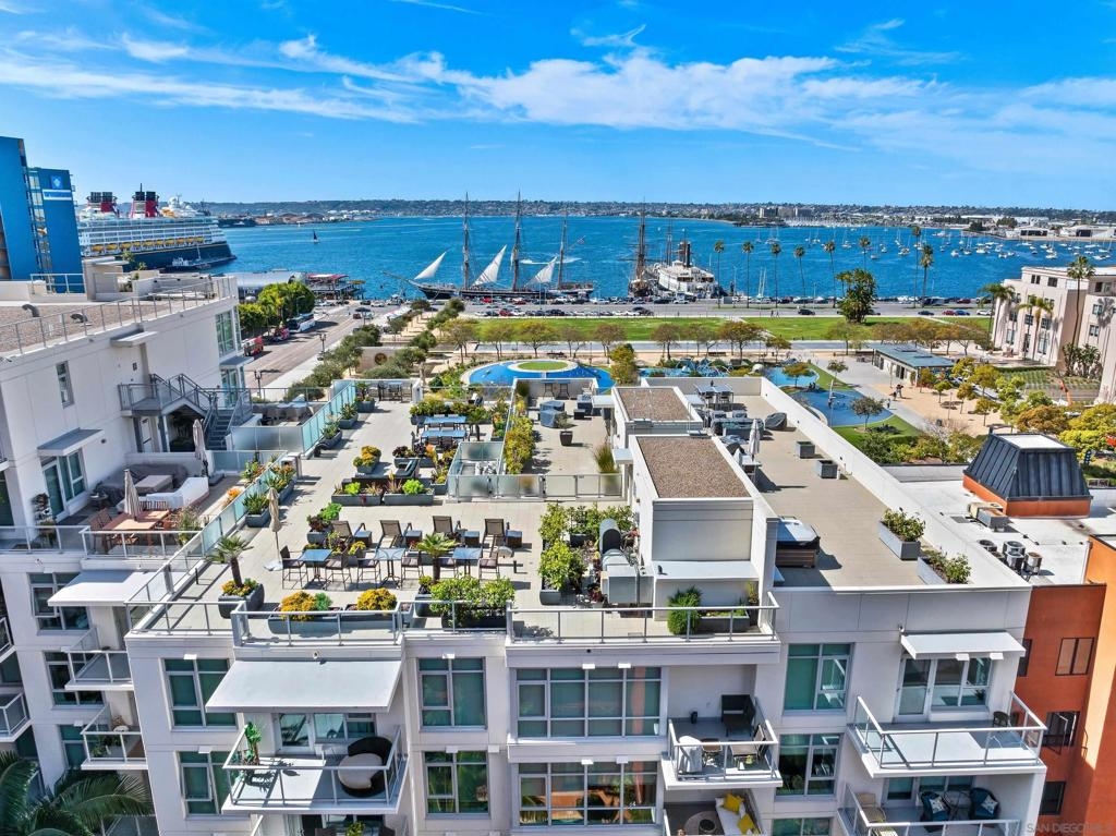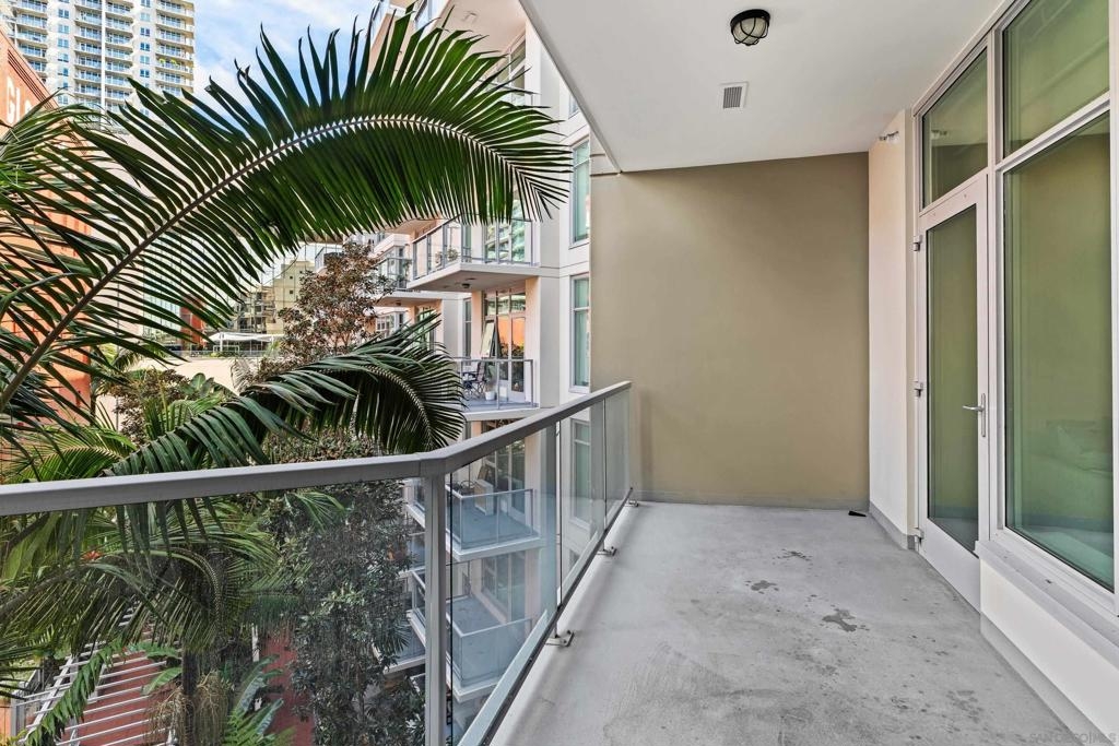 Welcome to Breeza, one of the most desirable residences in the Downtown's Little Italy neighborhood. This is one of only six oversized one-bedroom homes in the entire community—making it a truly rare opportunity and arguably one of the finest one-bedroom residences in the neighborhood. This beautifully maintained home showcases pride of ownership throughout and features a bright open-concept floor plan designed for comfortable living and effortless entertaining. The chef-inspired kitchen is centered around a large granite island with breakfast bar, complemented by stainless steel appliances, abundant cabinetry, and generous counter space. Soaring 10-foot ceilings in both the living room and bedroom enhance the sense of space, while beautiful wood flooring and large windows create a light and inviting atmosphere. The spacious bedroom offers direct access to the well-appointed bathroom with dual vanities, creating a convenient and functional layout. Step outside to your private oversized balcony, perfectly positioned among mature whispering palms overlooking Breeza’s award-winning courtyard—providing a peaceful and private retreat rarely found in urban living. Additional highlights include P-1 parking, new plumbing hardware, new washer and dryer, and updated lighting. Ideally located at the southwest edge of Little Italy and just one block from the waterfront, this home offers one of downtown San Diego’s most walkable lifestyles, moments from the scenic San Diego Bay and the beautiful Waterfront Park. Residents of Breeza enjoy a welcoming community atmosphere and resort-style amenities, including a heated pool and spa, fully equipped fitness center, community lounge, business center, Wi-Fi in common areas, on-site professional management, and a spectacular 8th-floor rooftop terrace with unobstructed views of the bay, sunsets, the historic Star of India, and the downtown skyline. Just steps from Little Italy’s celebrated restaurants, cafés, and the renowned weekly farmers market, and moments from Waterfront Park featuring playgrounds, open green space, pickleball and basketball courts, and a dog park. A rare and exceptional opportunity in one of downtown San Diego’s most sought-after communities—priced to sell.