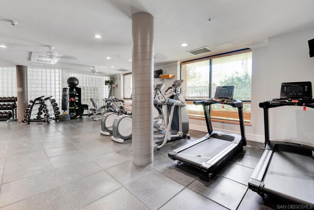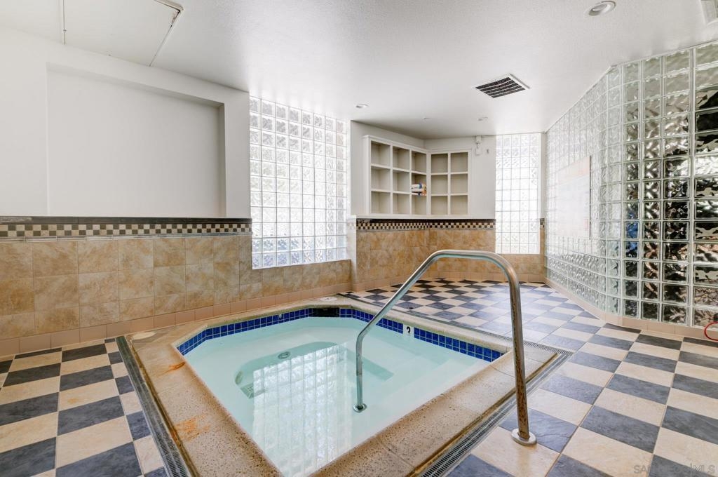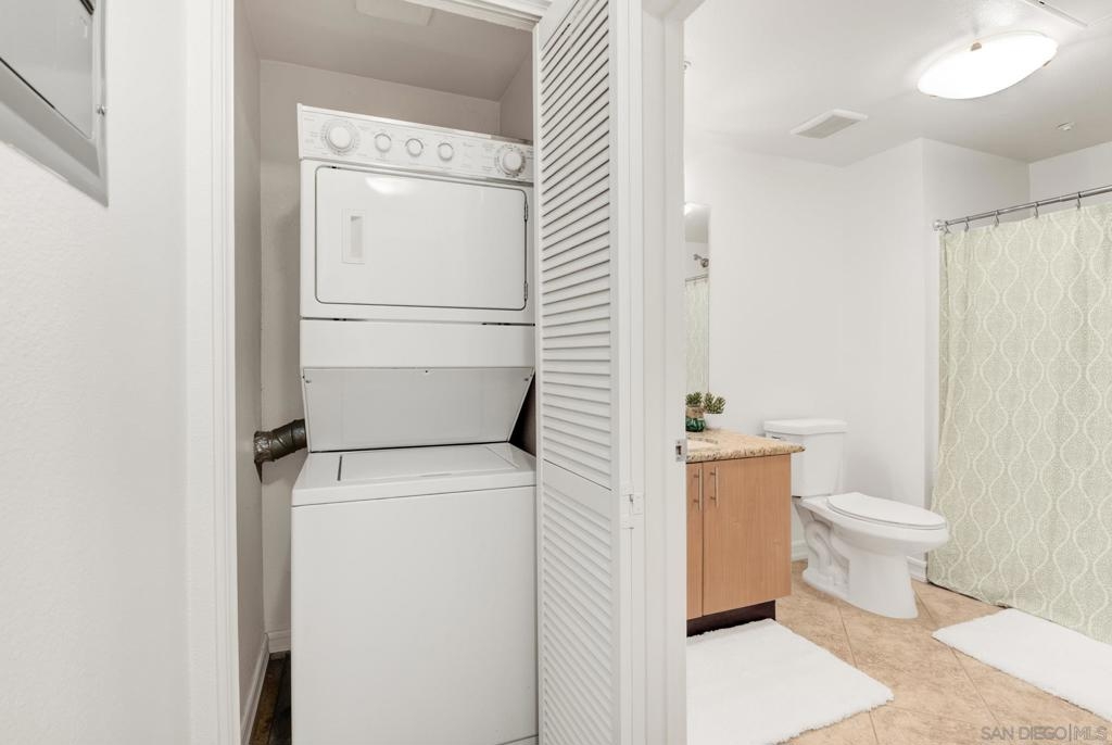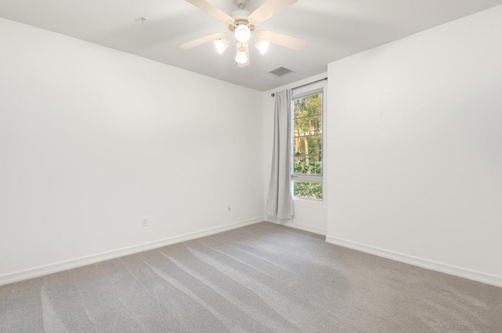 Welcome to Union Square at Broadway, a VA-approved community that combines the convenience and excitement of city living in a neighborhood-like setting. This spacious end-unit condo offers two-bedrooms and two-bathrooms in a rarely available layout with private patio area. The great room boasts expansive bay windows that look out on breathtaking mature trees. This property is located in a prime location to enjoy all Downtown has to offer, just steps to San Diego City College and within walking distance of Petco Park and the future East Village Green (Phase 1 Opening in 2025). Enjoy a kitchen that is both stylish and functional with sleek granite countertops and Whirlpool appliances, with upgraded gas range and built-in microwave. Sleek wood-look tile flooring runs throughout the kitchen, living room, and hallway, while both bedrooms have plush carpeting. The primary bedroom with ensuite features two closets and custom Closet World built-ins. The secondary bedroom features mirrored closet doors and looks out on the community’s tropical landscaping. Both bathrooms include shower/tub combos, granite countertop vanities, and upgraded modern light fixtures. Residents of Union Square enjoy access to an impressive array of amenities, including onsite management, a fully equipped gym with sauna and jacuzzi, BBQ areas, a party room, community EV charging stations, and an active social committee that hosts year-round events such as a St. Patrick’s Day party and an End of Summer social. Don’t miss this rare opportunity to own in one of San Diego’s most desirable downtown communities. This unit has two dedicated tandem parking spaces with storage cage in the community’s secure gated parking garage. Other unit features include in-unit laundry, central heating and air conditioning and ceiling fans in both bedrooms and living room. This condo is in the ideal location for commuters and those who utilize public transit, providing easy access to the Trolley and freeways. The area also plays host to frequent community events like the East Village Block Party, Oktoberfest, Taste of East Village, and the annual Tree Lighting and Holiday Market. Enjoy top rated restaurants right in your neighborhood, including Calle, Cowboy Star, Lola 55, IZOLA, Bar Kamon, Sovereign Thai, Bottle Rocket and more.