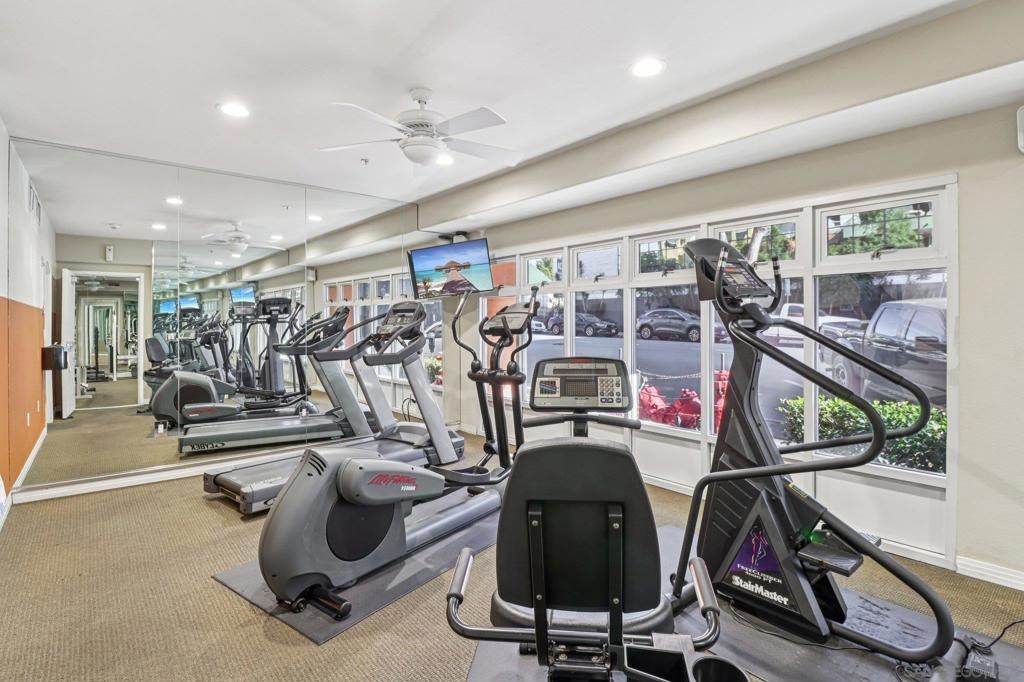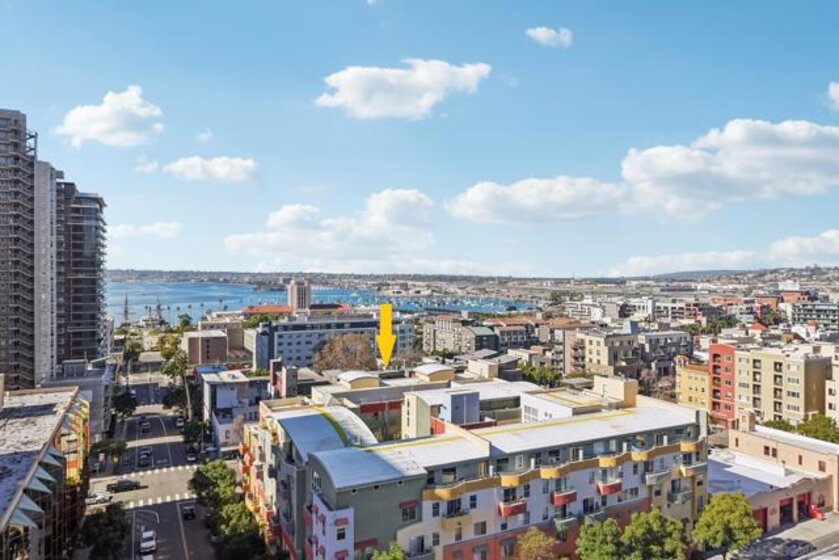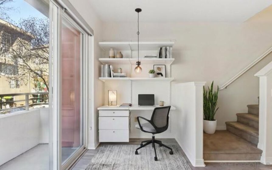 Rarely available live/work opportunity in the heart of Little Italy. This unique Shopkeeper-style property offers a street-level commercial space with an adjoining two-bedroom, 2.5-bath townhome-style residence above—ideal for owner-users, creatives, or investors seeking versatility and income potential. The ground-floor commercial space, currently rented, approx 600 sq ft, includes a half bath and interior stairs leading to the residence. A lockable door separates the two spaces. The residential condo is light and bright, featuring a formal entry and an open-concept layout with a spacious kitchen, living, dining, and office area. This level also includes a convenient half bath and opens to a generous balcony with city views. Upstairs, the primary suite offers a walk-in closet with custom shelving and a well-appointed bathroom with a walk-in shower. The second bedroom is also en suite, complete with a shower/tub combination, while hallway storage cabinets provide added functionality. Additional highlights include in-unit laundry and two side-by-side parking spaces. Located within Village Walk, a charming community inspired by the colors and textures of Burano, Italy, residents enjoy courtyards, piazzas, fountains, a fitness center, and a community room. Step outside to experience the very best of Little Italy—top-rated restaurants, boutiques, coffee shops, nightlife, and the renowned Little Italy Farmers Market. Just blocks away, enjoy scenic harbor walks and bay views, with easy access to the Marina District, Gaslamp Quarter, East Village, Petco Park, and The Rady Shell.