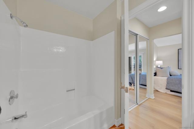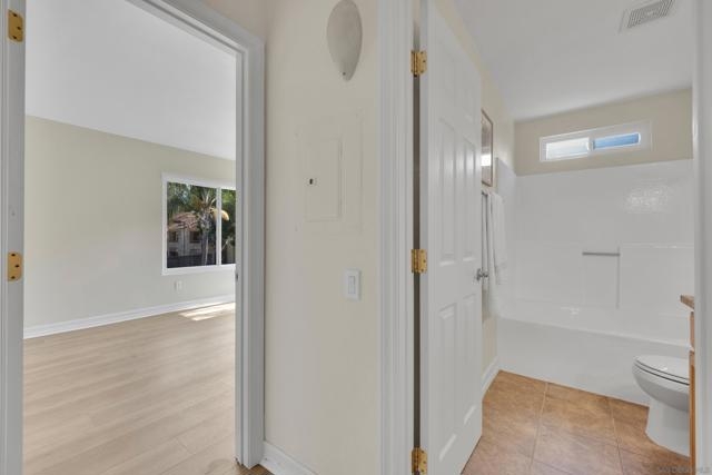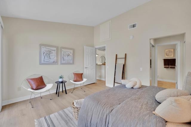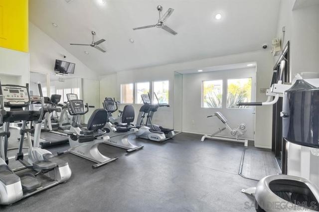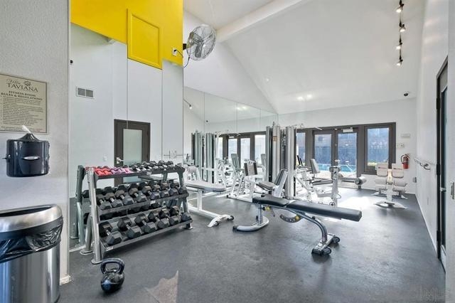 Welcome to Villa Taviana, a serene top-floor 2-bedroom condo located on the quiet side of the complex in the award-winning Poway Unified School District. This beautifully updated home features soaring vaulted ceilings, newer windows, and brand-new luxury vinyl flooring throughout. Enjoy resort-style amenities including a sparkling pool, fully equipped gym, stylish clubhouse, and tennis court. HOA covers water and trash for added convenience. With modern upgrades and peaceful surroundings, this condo offers the perfect blend of comfort, style, and community living. Two assigned parking spaces. Complex is VA and FHA approved.