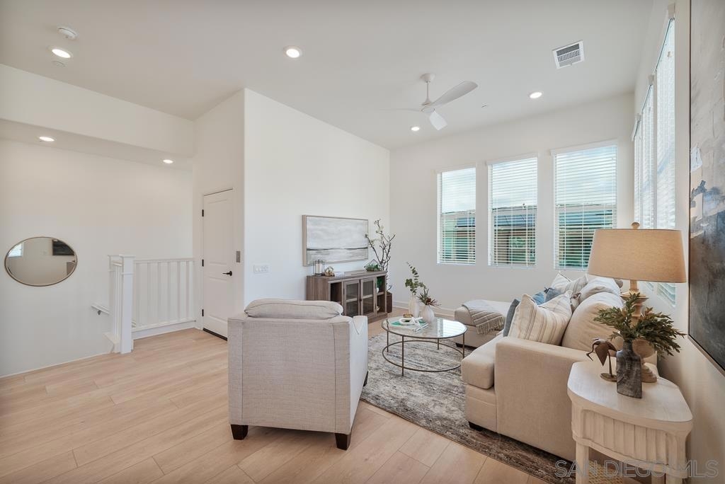 AVANTE IS A 55+ COMMUNITY. Coastal modern luxury meets effortless living in this FULLY RENOVATED 3 bd/3 ba home in the heart of Del Sur. ONLY AVANTE FLOOR PLAN WITH A FULL BEDROOM & BATHROOM DOWNSTAIRS - perfect for guests, a caretaker, or an office/flex space. Indulge in 1,688 sq. ft. of French LVP flooring, fresh warm white interior paint, and designer upgrades at every turn. Take the stairs or your own private elevator to the open-concept main level, filled with natural light. The kitchen features modern... gray quartz countertops, white shaker cabinetry, sleek glass tile backsplash, glass display cabinets, European soft-close drawers, and a stainless steel G.E. appliance package. Brushed brass pendant lighting & a statement chandelier elevate the space. A private open-air balcony is perfect for morning coffee or sunset lounging. The spacious primary suite features crown molding, a custom built-in walk-in closet, and a spa-inspired bath with designer mosaic backsplash, arched wood-frame mirror, upgraded lighting, and a new Toto bidet toilet. Quartz countertops, modern fixtures, and designer tile finishes fill all bathrooms. Smart home features include a Schlage keyless entry, Honeywell smart thermostats, enhanced WiFi connectivity, a new smart G.E. washer/dryer, & more. Pristine water here comes from a new whole-house water softener, and a 5-stage reverse osmosis water filtration system. Take advantage of the Avante clubhouse, pool & spa, fire pit, BBQ areas, and calendar of resident events. Part of the master Del Sur community, with access to its parks, pools, & trails. Walkable to Del Sur Town Center. Come see this true gem!