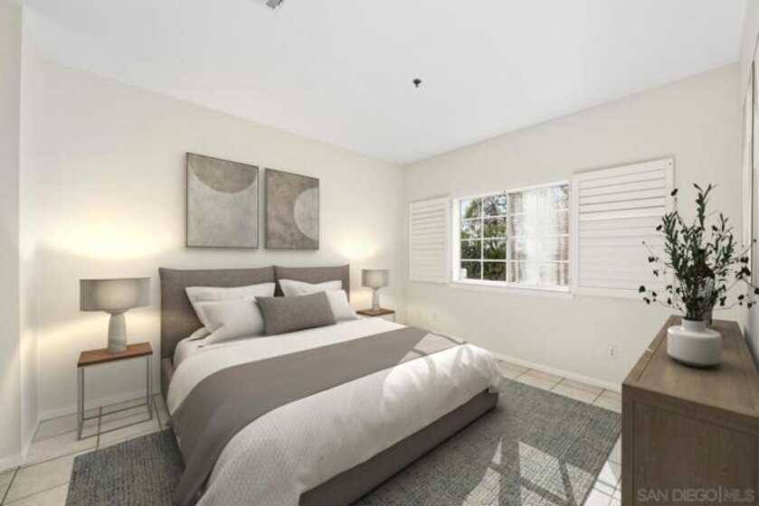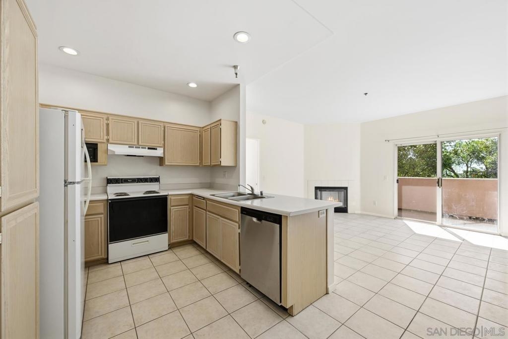 Desirable ground-floor corner unit in The Summit of Rancho Bernardo, offering privacy, abundant natural light, and a bright open layout. The spacious living room features a cozy fireplace and sliding glass doors that open to a private patio with peaceful greenery views, perfect for morning coffee or relaxing outdoors. The primary bedroom includes a large walk-in closet and an en-suite bathroom. Additional highlights include in-unit laundry, two parking spaces, and a private patio storage closet for added convenience. Enjoy the amenities of this highly sought-after community, including two pools, a fitness center, and tennis courts. Ideally located within the award-winning Poway Unified School District and just minutes from popular restaurants, shopping centers, parks, and everyday conveniences in Rancho Bernardo. VA approved complex.