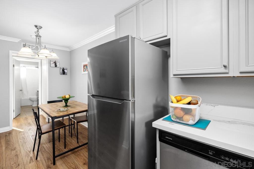 Welcome to this top-floor condo in the heart of vibrant Hillcrest, offering the perfect blend of comfort, style, and walkable urban living. This thoughtfully upgraded 1-bedroom, 1-bath home features 608 square feet of well-designed space with modern finishes throughout. The updated kitchen showcases sleek countertops and stainless-steel appliances, opening to a bright and inviting living area ideal for relaxing or entertaining. The remodeled bathroom features a contemporary shower, dual vanities and stylish fixtures, creating a clean, modern feel.Situated on the top floor of a quiet three-story building, the unit enjoys added privacy with no neighbors above. The gated community features secure underground parking, free community laundry on every floor, and a spacious dog run.Located just blocks from Balboa Park and moments from the shops, restaurants, nightlife, and cafes along University Avenue, you’ll enjoy easy access to some of San Diego’s most popular neighborhoods including North Park and University Heights.Whether you're a first-time buyer, investor, or looking for a centrally located city home, this Hillcrest gem offers exceptional convenience and lifestyle in one of San Diego’s most desirable urban communities. VA Approved!