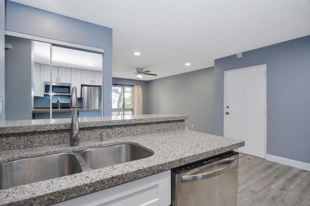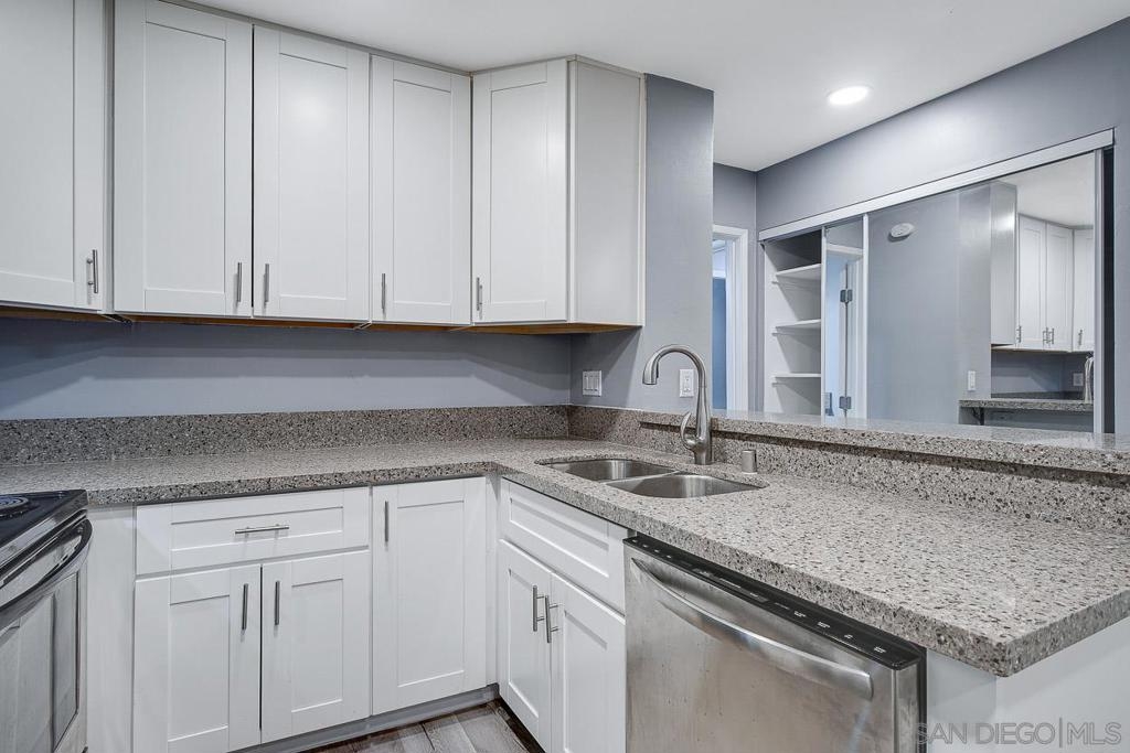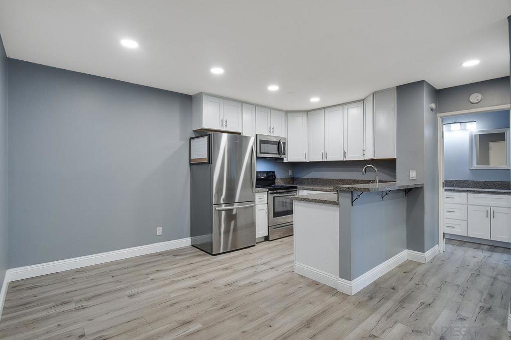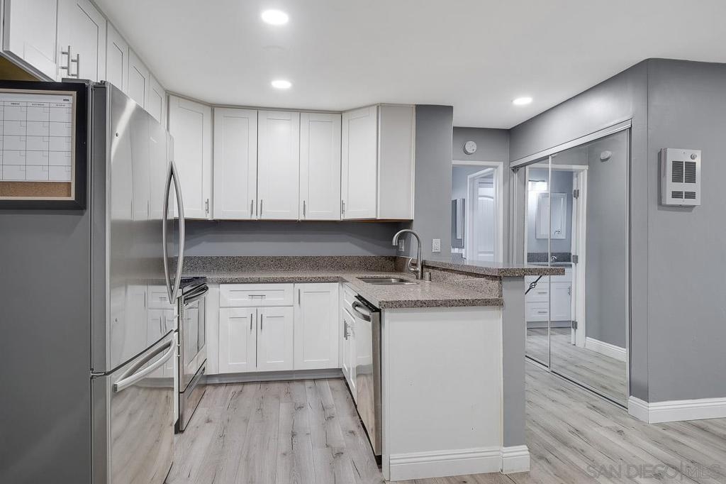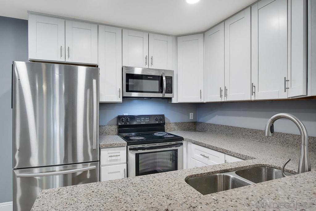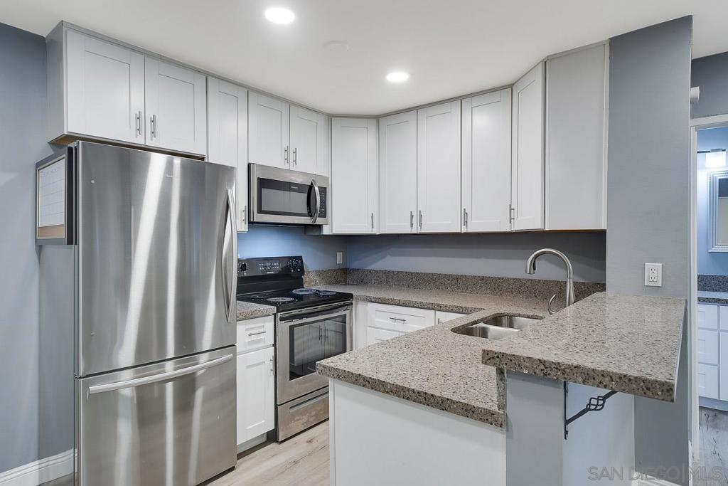 Fully remodeled 1 bedroom 1 bath at The Plaza in Pacific Beach. Corner unit featuring new finishes throughout including new carpet and hard flooring, new stone counters, new cabinetry, stainless appliances, new shower and bathroom vanity cabinetry. HOA resort style amenities include 4 pools and spas, 7 tennis courts, full size gym and sauna, on-site management, on-site 24 hr security, barbecues all on a fully gated property. Approximately 1 mile walking distance to both Crown Point and Diamond St beaches. Walking distance to shopping and dining.