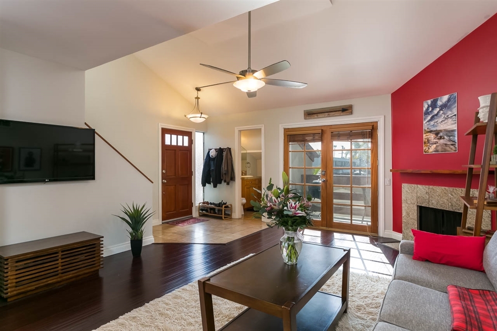 Located in the heart of Pacific Beach, only a few minutes to the beach or bay! This beautiful home is close to local shops and restaurants. You enter this home in to open living space with beautiful hardwood floors, vaulted ceilings, a stunning fireplace and French doors leading to the sunny patio with a view. Kitchen features stainless steel appliances and granite tile countertops. This home features 1 garage plus 1 assigned parking spot. Washer/Dryer in unit.. Neighborhoods: Pacific Beach Equipment: Range/Oven Other Fees: 0 Sewer: Sewer Connected, Public Sewer Topography: LL