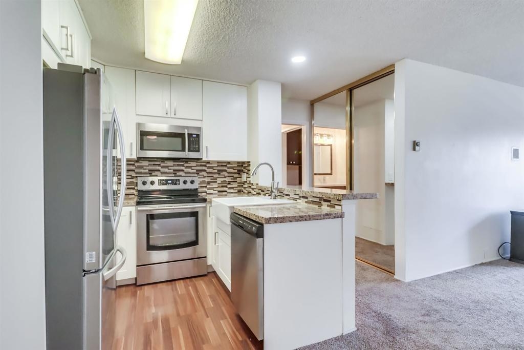Nicely updated end unit located in the heart of Pacific Beach at the popular Plaza Complex. Only 1 shared wall, this unit features updated cabinets, counter tops, backsplash as well as a completely updated bathroom. Peaceful balcony space, 1 parking space and ready for it's new owner. A highly sought after resort style community which features 4 pools, a fitness center, billiards room, tennis courts, sauna and is all located within blocks of shops & restaurants.