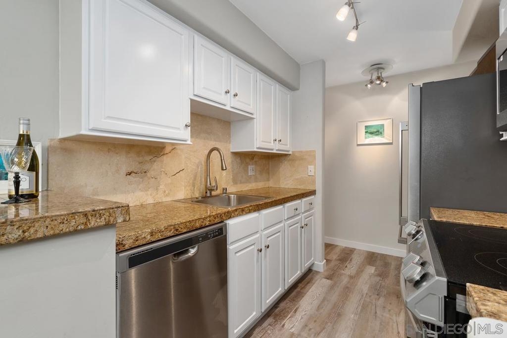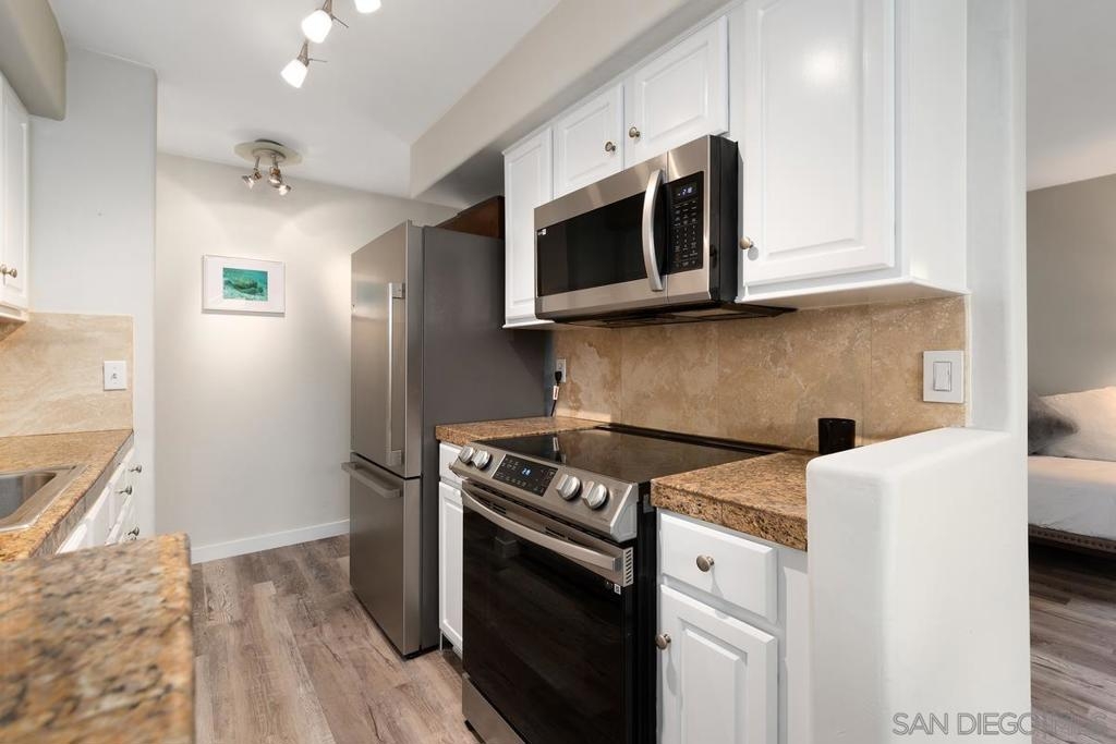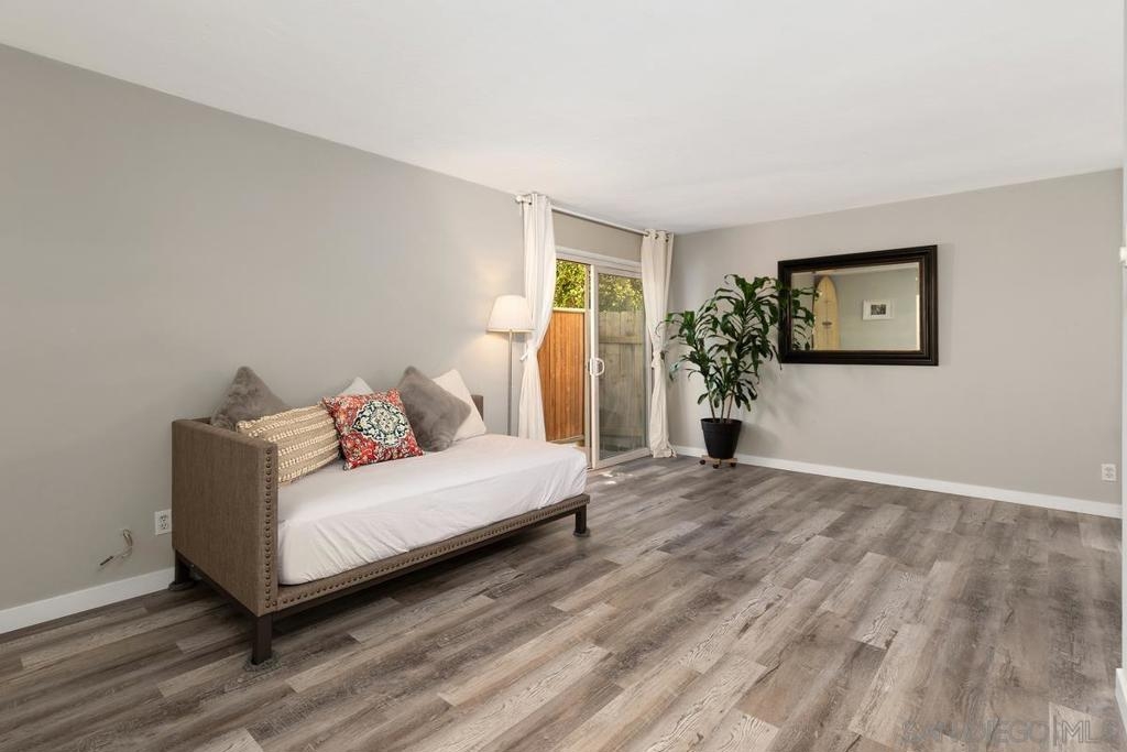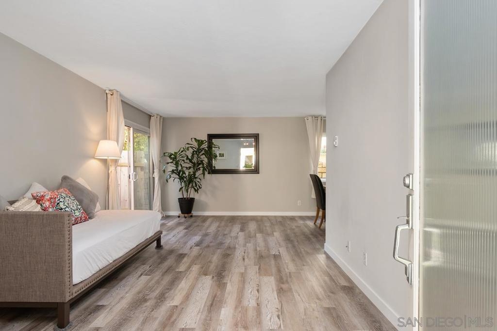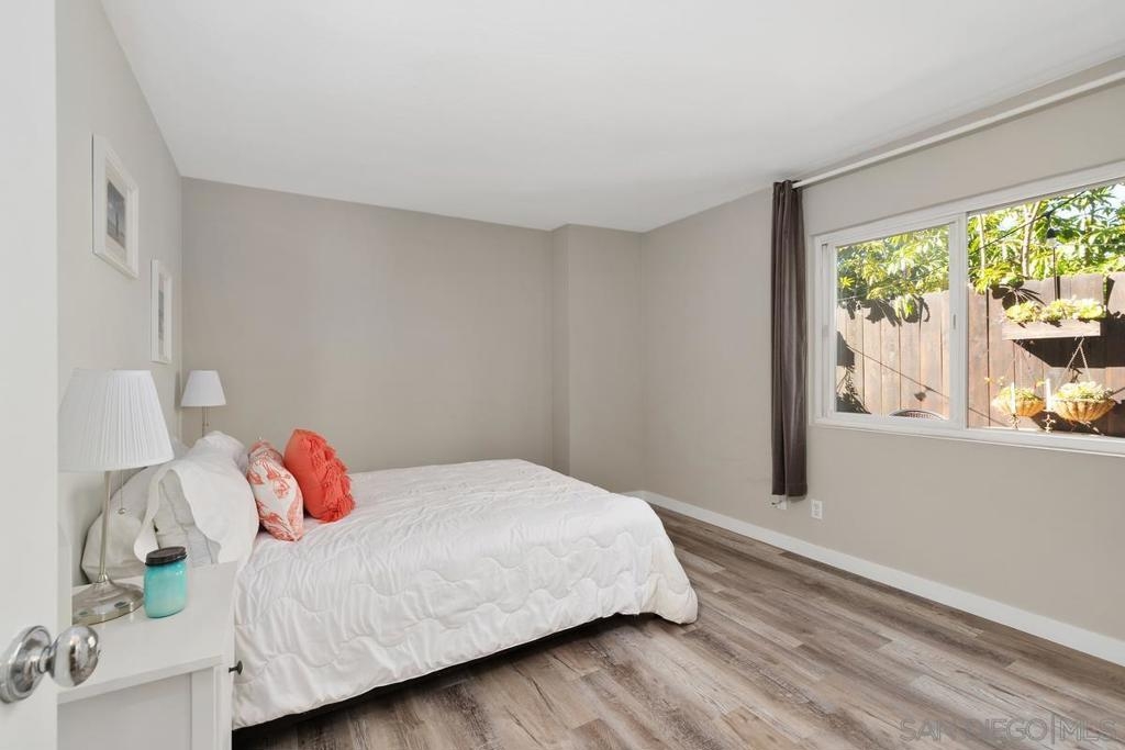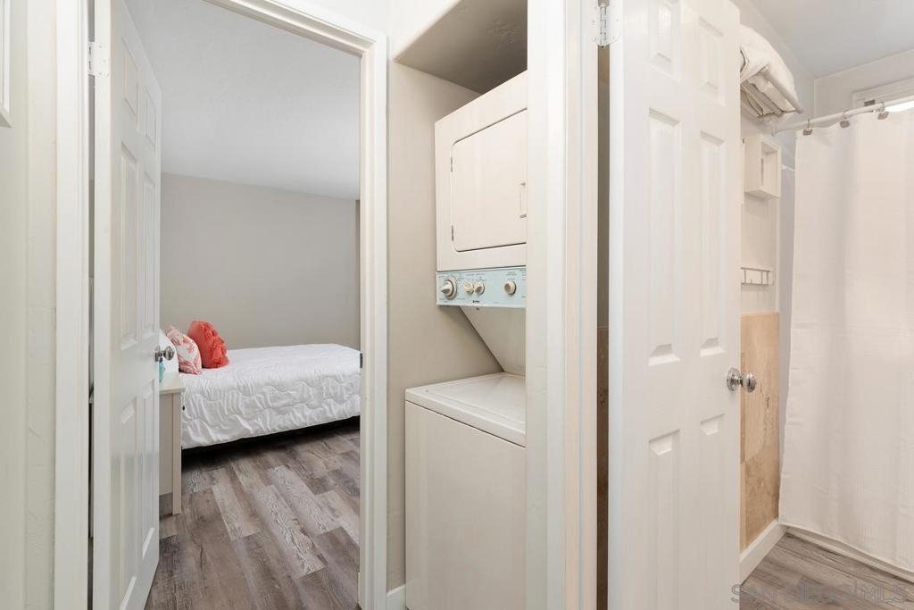 Live at the Beach - just in time for summer! Tucked away on a quiet street in a small, 12 unit complex in Pacific Beach, this light & airy, single level, end unit is move-in ready. Recently painted, with laminate floors throughout, newer stainless appliances, & stacked washer/dryer. Enjoy outdoor entertaining on your private & very spacious patio. Energy efficient dual paned vinyl windows. Short distance to fun restaurants, pubs & cafes, boutiques & grocery stores, night life, & beautiful beaches. The San Diego Lifestyle awaits you here! Easy access to freeway. Low HOA fees. Enter unit from side gate & there are no stairs to unit - true single level living.