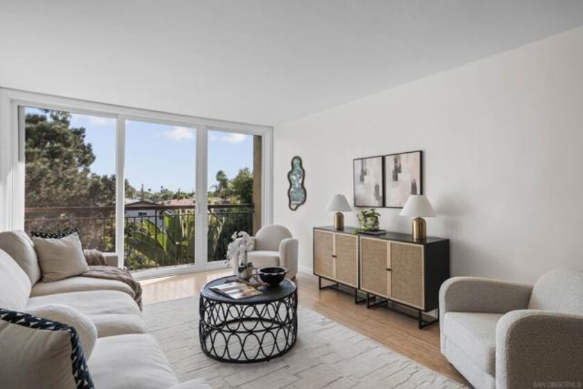 Bay views from your living room, dining, and kitchen of this top-floor residence at The Regency in Pacific Beach. Perfectly positioned just blocks from the water, this home captures the essence of San Diego’s coastal lifestyle, relaxed, and connected to everything that makes this neighborhood so desirable. Inside, the open floor plan is airy and light-filled, living room slider and expansive windows that frame the bay and create an immediate sense of space. The main living areas flow seamlessly together, making it ideal for both everyday living and entertaining. The kitchen is positioned to take full advantage of the view, allowing you to enjoy the beauty of the bay from the heart of the home. The bedroom offers a quiet retreat surrounded by lush greenery, creating a tranquil setting to start and end each day. Two spacious bedroom closets provide ample storage, and the full bathroom is designed with dual access, an ensuite entry from the primary bedroom, and a second entry to accommodate guests comfortably. Practical features add to the appeal: an assigned parking space, in-building laundry, and the privacy of being on the top floor with no neighbors above. Just outside your front door, the pool view sets the tone for a resort-style atmosphere, complemented by a well-maintained community. Amenities include the pool, BBQ area, and dedicated bike and surfboard storage. The Regency is a fully gated community known for its lush landscaping and coastal charm. Its location offers the best of both worlds: close proximity to the bay, waterfront paths, the ocean, and some of Pacific Beach’s best dining and cafes, while remaining tucked slightly away from the busiest corridors. The result is easy access and a peaceful, residential feel. Pacific Beach, or “PB,” as locals affectionately call it, is one of San Diego’s most sought-after coastal neighborhoods, offering the perfect blend of classic California charm and vibrant local energy. Just minutes from both the bay and the ocean, residents enjoy an active outdoor lifestyle with morning walks on the boardwalk, bike rides along the coast, paddleboarding on the bay, or sunset runs by the water. The neighborhood is centrally located with easy access to major freeways and nearby areas like La Jolla, Mission Bay, and downtown San Diego, making it as convenient as it is beautiful. PB is known for its lively dining and social scene, featuring trendy coffee shops, casual cafés, and popular waterfront restaurants, all balanced by a welcoming neighborhood feel. Depending on where you are, you can experience the energy near Garnet Avenue or the quieter, more residential streets just a few blocks away, where tree-lined roads, walkable paths, and easier parking create a calm, community-oriented vibe. Locals love the easy access to beaches, parks, and bike trails, along with farmers markets, fitness studios, surf shops, and everything needed for a true coastal lifestyle. This residence offers more than just a place to live, it’s a lifestyle defined by light, views, and the unmatched energy of Pacific Beach. Open Houses 10/11 & 10/12 12-2pm.