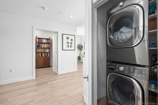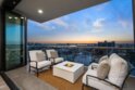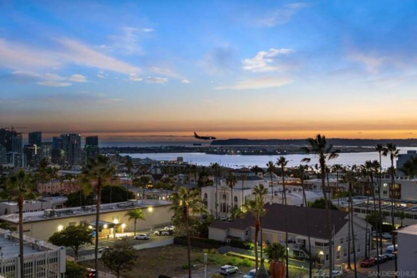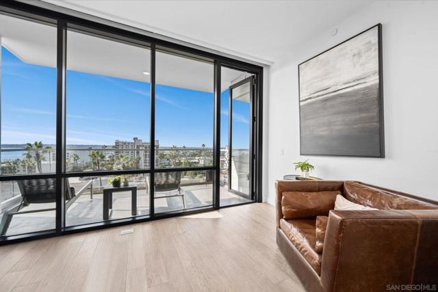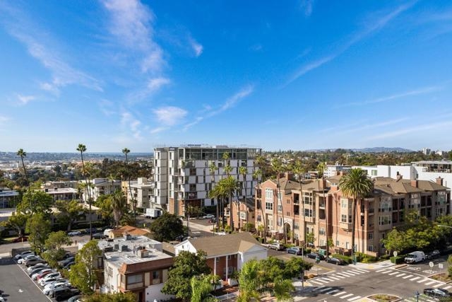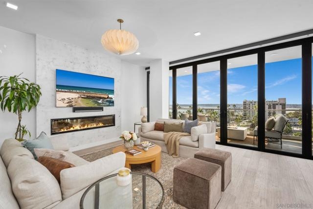 This eighth-floor northwest corner residence at 41West has not been available since it was originally sold by the developer. Its premier orientation offers expansive Bay, ocean, Point Loma, and downtown skyline views, with stunning sunsets to the west and beautiful light from the north. The emerging north-facing skyline is becoming its own impressive cityscape, adding even more interest to the view corridor. Located across from Balboa Park, 41West remains one of the most desirable boutique luxury buildings in Bankers Hill, with only 41 homes and a reputation for quality, privacy, and modern design. The floor plan features terrace access from both the primary suite and the living room, where a full wall of Nana doors opens to the outdoors. Interior highlights include 10-foot ceilings, recessed lighting, a state-of-the-art kitchen with Miele appliances, gas cooktop, large wine storage, and modern Italian cabinetry. Additional features include wide-plank wood flooring, a luxurious primary bath with soaking tub, separate shower, dual vanities, premium fixtures, and an integrated lighting and sound system. additional room used as library and lounge, double door entry and only 4 residences on this floor. This is a rarely available corner home that must be seen to appreciate the scale, light, and quality. The lifestyle at 41West is exceptional. At your doorstep are fitness studios, hair and nail salons, massage, coffee shops, restaurants, and the cultural heart of Balboa Park. Downtown is minutes away, and the walkable neighborhood of Bankers Hill provides every daily convenience.