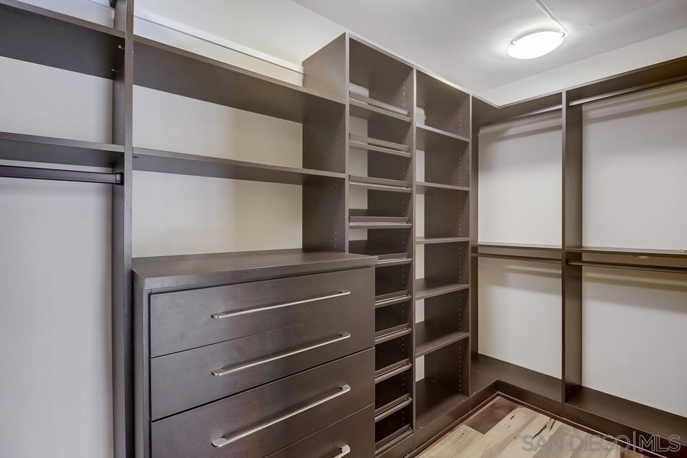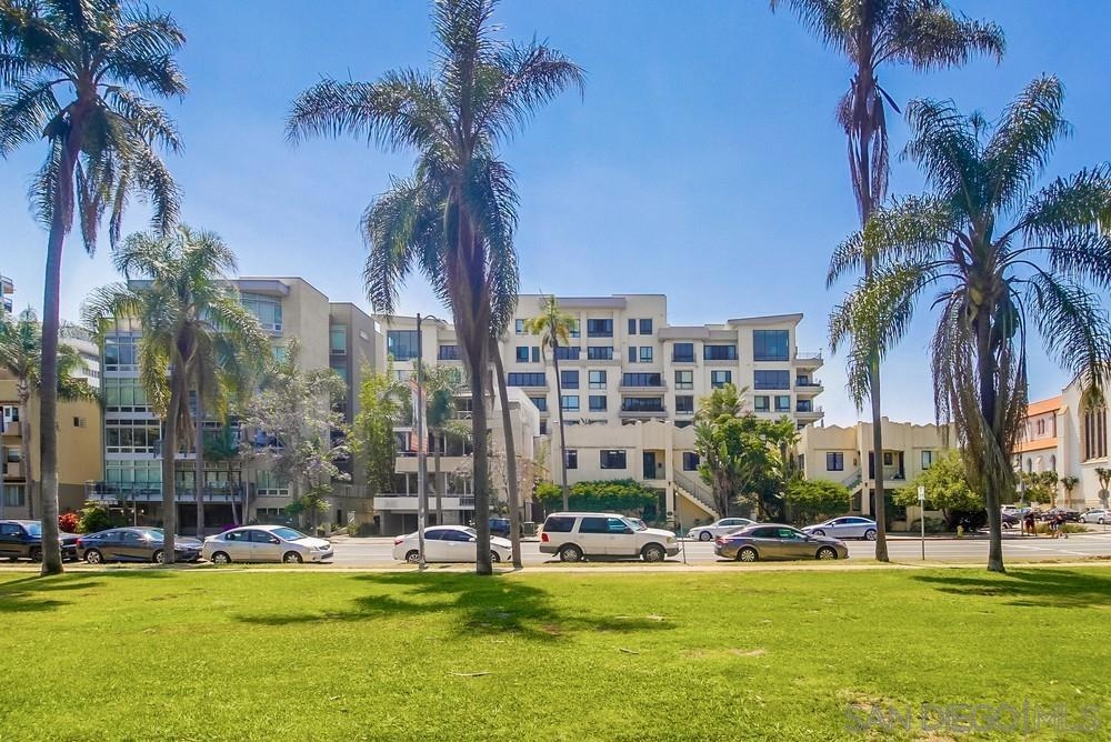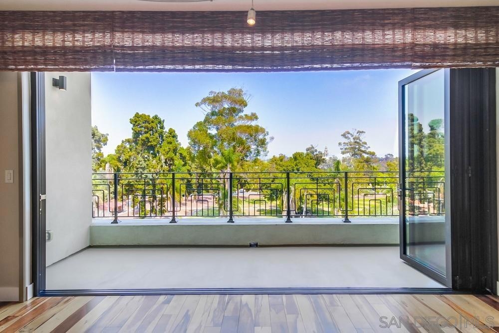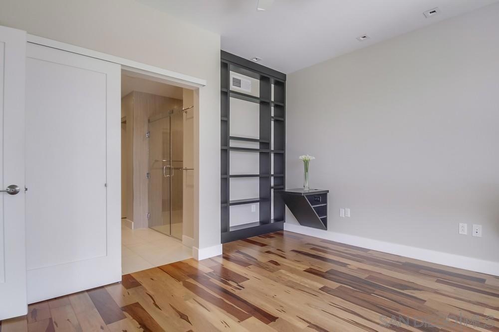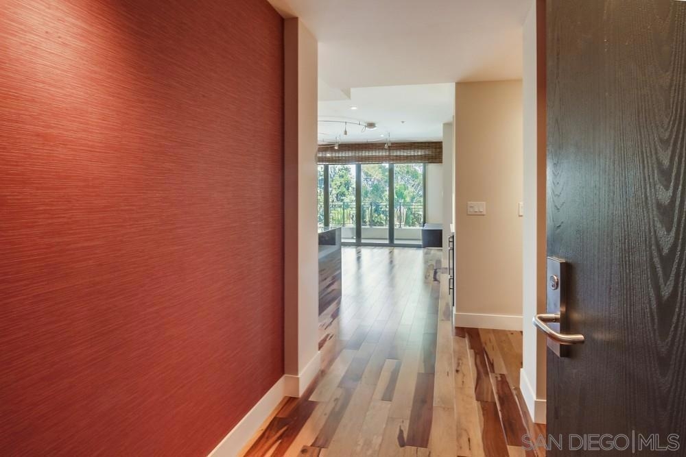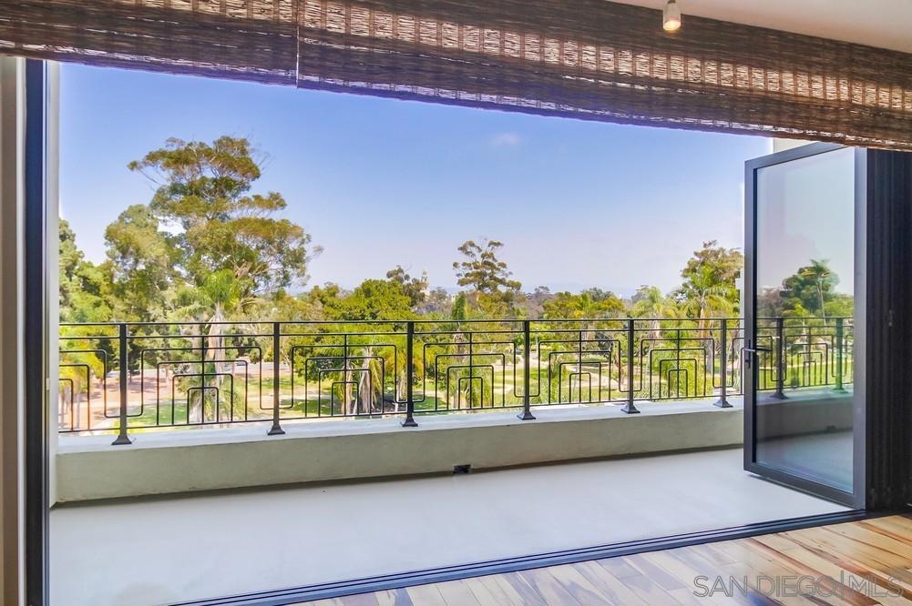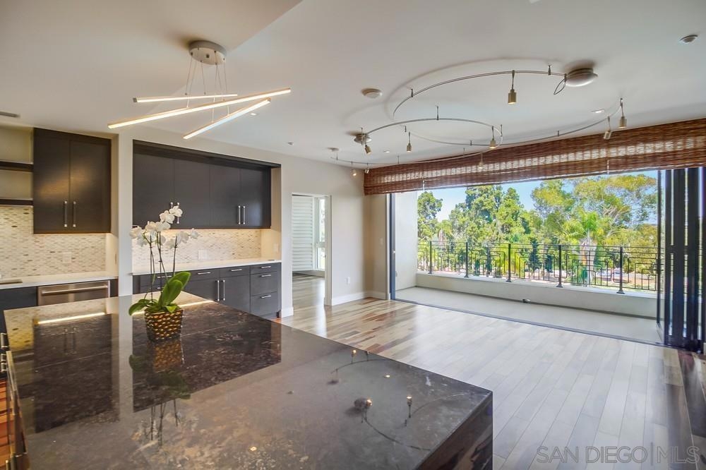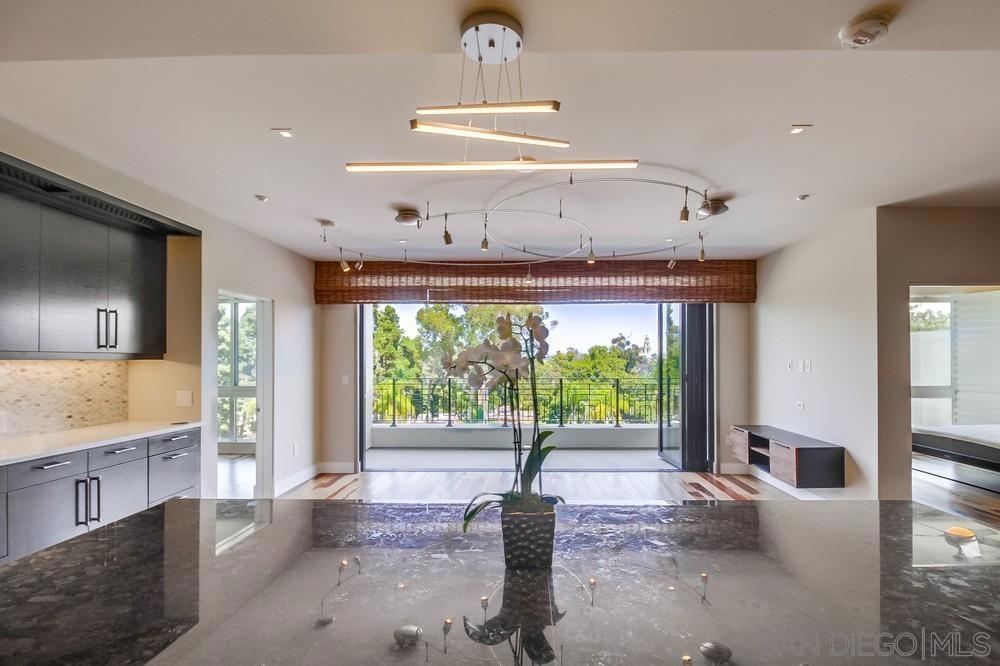 Perfection on the Park: perfect in every detail. East facing on 6th floor with tree top views of Balboa Park and CA tower from all living areas and balcony. This home was design by a former custom home builder whose attention to detail is amazing. Extensive upgrades include pecan hardwood floors, kitchen island has granite with waterfall edge, extensive custom lighting throughout, custom designed built-in wine cooler with cabinets, extended banks of kitchen cabinets, primary bedroom built-ins: bookshelves and bedside tables widened to support CA King bed, custom backsplash in both bathrooms – sink and shower, CA Closet built-ins in Primary closet and guest closet, 4 inch shutters in both bedrooms, valence and two automatic screens (bug and solar) at accordion door, CA Closet Murphy bed in second bedroom, custom wallpaper at entry and accent wall, and EV charger.