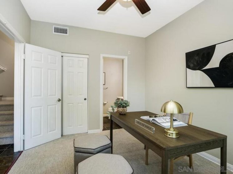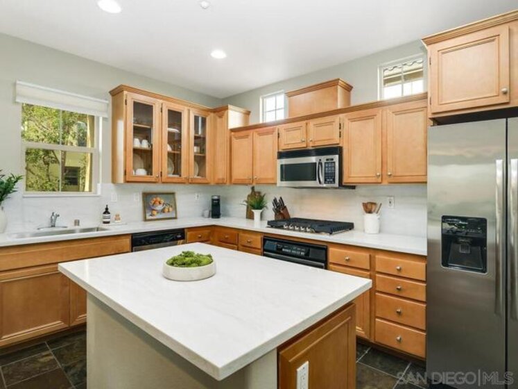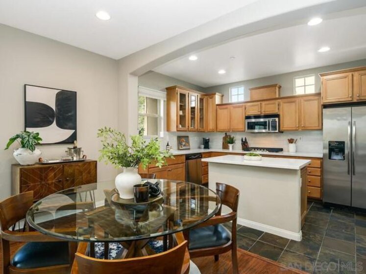 Welcome to 2684 Escala Circle, a beautifully updated Plan 3 Terrace residence in the sought-after community of Escala. Thoughtfully designed with three levels of living space, this home offers flexibility, comfort, and elevated style in one of Mission Valley’s most desirable gated neighborhoods. The entry-level features a private bedroom and full bathroom, ideal for guests, multigenerational living, or a home office, and is complete with new carpet. This level also provides direct access to the attached two-car garage for everyday ease and convenience. The main living level is bright and inviting, with an open-concept layout perfect for entertaining. The kitchen has been refreshed with new quartz countertops, providing a clean, contemporary feel and ample prep space. The dining area flows seamlessly into the spacious living room, anchored by a cozy gas fireplace. Step outside to the patio to enjoy the afternoon sun and relaxed indoor-outdoor living. This level also includes a convenient half bath and a dedicated laundry room, making daily living both practical and efficient. On the third level, you’ll find two spacious bedrooms, each with its own ensuite bathroom, creating a functional dual-primary layout perfect for privacy and comfort. New carpet on the stairs adds a fresh finishing touch to the home’s recent updates. Residents of Escala enjoy beautifully maintained grounds and resort-style amenities, including a clubhouse, pools, fitness center, tennis courts, and playground, all within a gated setting just minutes from shopping, dining, Snapdragon Stadium, and major