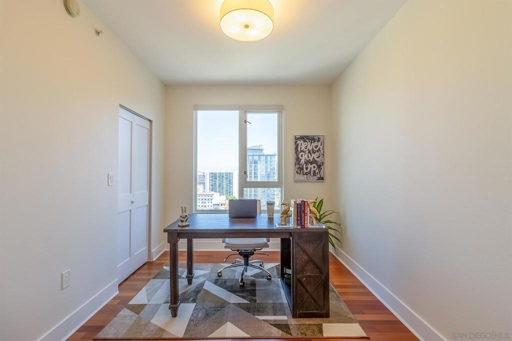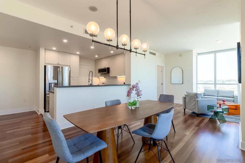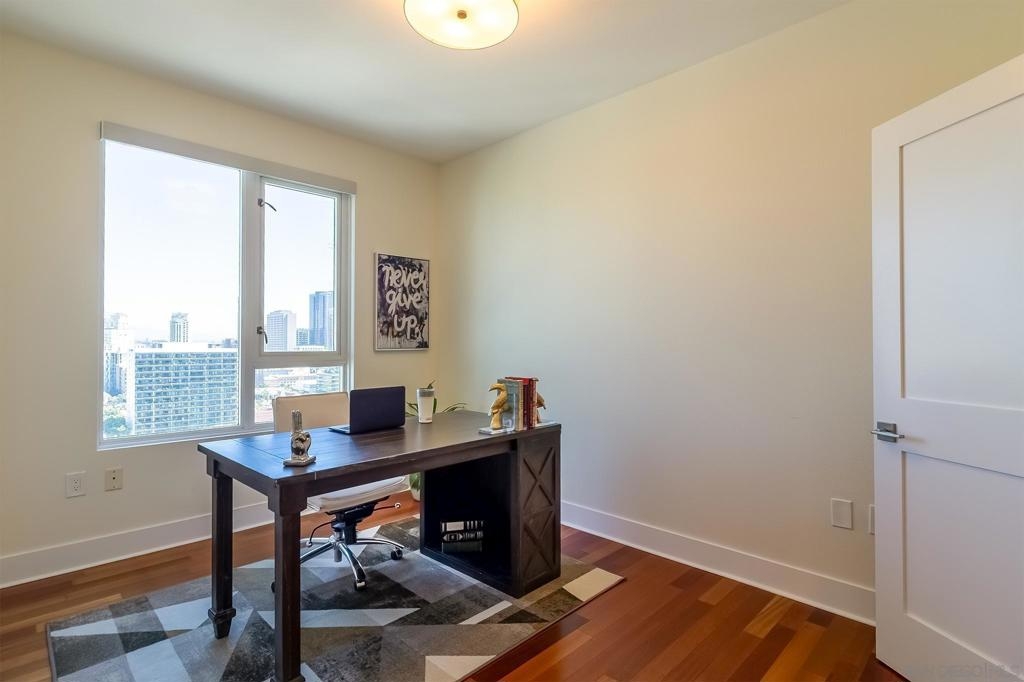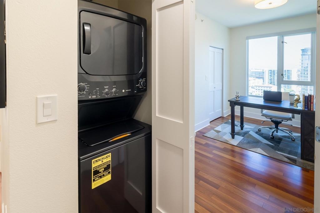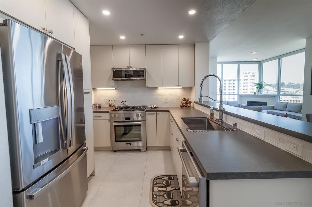 "WowCome" to Unit 1908 at 300 W Beech Street, a sophisticated residence in the heart of San Diego’s vibrant Little Italy neighborhood. Perched on the 19th floor, this stunning condominium offers sweeping city views, abundant natural light, and a modern urban lifestyle just steps from some of San Diego’s best dining, cafes, and waterfront attractions. This beautifully appointed residence features an open-concept living space designed for both comfort and entertaining. Floor-to-ceiling windows frame breathtaking views while filling the home with natural light. The spacious living and dining areas flow seamlessly into a well-equipped kitchen with sleek cabinetry, granite countertops, and stainless steel appliances—perfect for both everyday living and hosting guests. The primary suite offers a peaceful retreat high above the city, complete with generous closet space and a well-appointed bathroom. Step onto your private balcony to enjoy morning coffee with sunrise views or unwind in the evening while taking in the sparkling city lights. Residents enjoy resort-style amenities including a fitness center, pool and spa, concierge service, 2 secure parking, and beautifully maintained common areas. Located just minutes from the San Diego waterfront, Little Italy’s farmers market, world-class restaurants, and downtown attractions, this home offers the ultimate combination of luxury, convenience, and lifestyle. Experience elevated downtown living at its finest in Unit 1908 at 300 W Beech Street. 300 W Beech Street, Unit 1908 – San Diego, CA This residence features a recently renovated kitchen with extensive upgrades and improvements, completed to enhance functionality, modern design, and code compliance. The following work was professionally completed: Kitchen Renovation Highlights Complete Kitchen Demolition Existing kitchen cabinets, pantry, and countertops were fully removed. Appliances including hood, refrigerator, and stove were disconnected and removed during renovation. Plumbing fixtures including sink, faucet, and garbage disposal were disconnected. Work areas were fully protected during construction and all debris was professionally removed. Plumbing & Electrical Upgrades Water lines upgraded for the new sink configuration. New dedicated water line installed for the refrigerator. New P-trap installed for the sink. New GFCI electrical outlets installed to meet current code requirements. Installation of new recessed lighting in the kitchen for improved illumination. Removal of one existing light fixture to create a cleaner lighting layout. Gas line connected for the new stove. Drywall, Texture & Paint All drywall areas impacted by demolition were repaired. New drywall areas were taped, mudded, and finished. Texture applied to match the existing interior finish. Walls were sanded and prepared for finishing. One coat of primer and two coats of paint applied to the renovated areas (color selected by owner). New Kitchen Installation Installation of new semi-custom kitchen cabinetry based on the approved design layout. Plywood base support installed beneath cabinetry for durability. New kitchen sink installed with under-mount configuration. Installation of new prefab quartz countertops. Custom fabrication for sink, faucet, and air-gap cutouts. Installation of a new tile backsplash. Full plumbing reconnection including sink, faucet, garbage disposal, and dishwasher. Installation of kitchen appliances. All protective coverings were removed upon completion and the work area was cleaned and cleared of construction materials. Result: A modernized, updated kitchen with improved lighting, upgraded plumbing and electrical systems, and contemporary finishes including quartz countertops, new cabinetry, and tile backsplash.