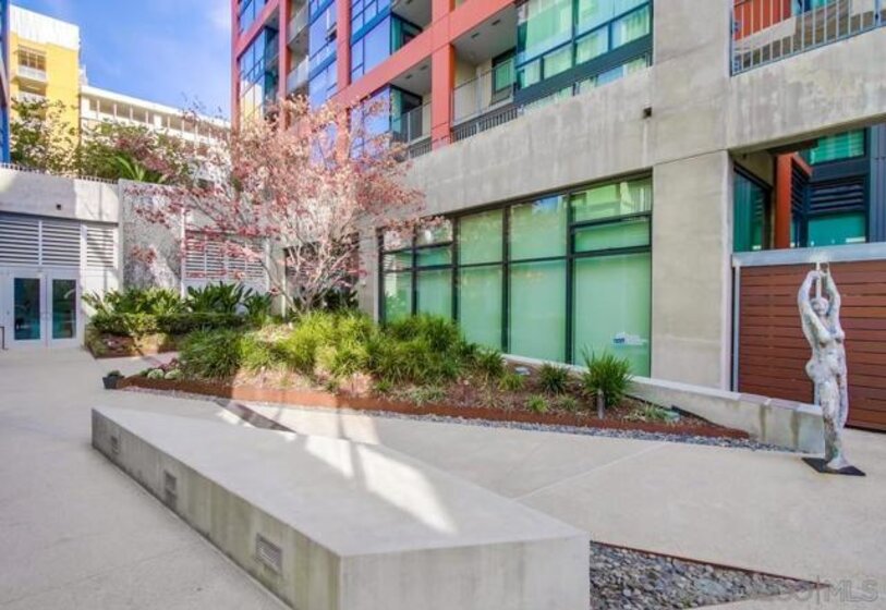 Welcome to ICON in East Village, where sophisticated urban living meets exceptional convenience. This chic 1-bedroom, 1-bathroom condo, covering 621 square feet, is a showcase of contemporary elegance. Experience the contemporary charm of exposed concrete walls and expansive windows that flood the space with natural light. The kitchen boasts stainless steel appliances and sleek granite countertops, complemented by rich wood floors. With an in-unit washer/dryer and a private balcony offering stunning city views, comfort is at your fingertips. ICON's HOA provides a well-rounded lifestyle with unparalleled amenities, including a deluxe full-size gym. Enjoy high-speed fiber optic WiFi, excellent service, and management available 24/7, with the only external bill being your electric bill. Unique to ICON, residents have access to one of only two skyboxes in downtown San Diego—a coveted feature that others pay memberships for, included in your living experience here. Just one street crossing away, the entrance to the marina and luxurious waterfront restaurants, including the Hyatt, Marriott, Hiltons, and Seaport Village, await. This rare opportunity offers a resort-style experience right in your backyard, less than five minutes away. Embrace luxurious city living at its finest. Welcome home!