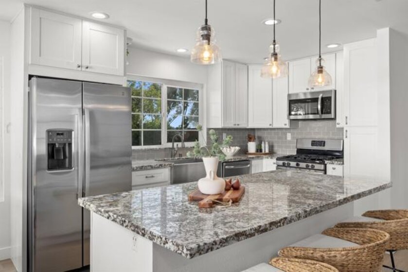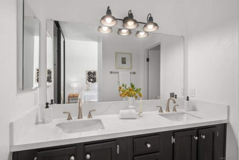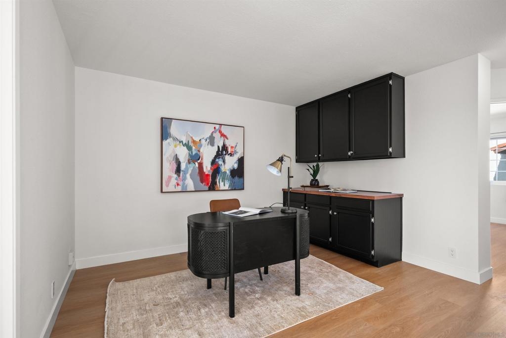 Welcome to the highly sought-after Mariposa community, ideally located near Allied Gardens, Del Cerro, and Mission Trails Regional Park. This attached single-family home is FHA and VA approved and offers 1,950 sq ft. of thoughtfully updated living space, in a spacious 3-story split-level layout. Privately positioned as an end-unit corner home, it shares only 1 wall and enjoys unobstructed westerly views over open space, bringing in natural light and a sense of privacy. The inviting living room features dramatic 20-foot ceilings, brand new luxury vinyl plank flooring, and fresh interior paint throughout. The beautifully renovated eat-in kitchen showcases granite countertops, stainless steel appliances, and a stylish bar with pendant lighting that comfortably seats four—perfect for casual dining or entertaining. The kitchen flows seamlessly into the spacious family room with recessed lighting and a cozy gas fireplace, while a formal dining area offers additional space for gatherings and special occasions. Upstairs you’ll find all 3 bedrooms, 2 full bathrooms, and a versatile loft ideal for a home office, media space, or play area. The primary suite offers vaulted ceilings, abundant closet space including a walk-in closet, and a semi-remodeled bath featuring dual sinks, quartz countertops, and a separate shower. Additional highlights include Central AC/Heat, a bonus interior storage area, full-size laundry, and an attached 2-Car Garage with direct access. Amenities include well-maintained grounds, including a large community pool, spa, and clubhouse!