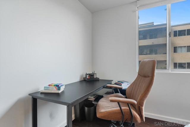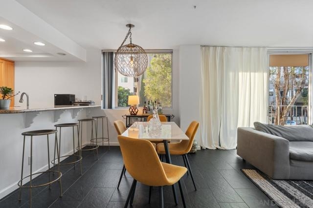 This beautiful, light-filled corner residence offers over 1,200 sq. ft. of spacious living with unbeatable walkability score to Hillcrest and Balboa Park. Step inside to discover elegant charcoal-gray tile flooring and an updated kitchen featuring stainless steel appliances, sleek cabinetry, and modern finishes that elevate the entire space. The open-concept layout provides both functionality and flexibility, making it easy to customize the home to your style. One of the standout features of Unit 2D is the expansive wrap-around patio—exclusive to only a select few corner units in Coral Tree Plaza—perfect for effortless indoor/outdoor living. The primary suite is a true retreat, complete with a dedicated work area, custom closet build-outs, ample cubbies, and a generous bath with double vanities and a luxurious soaking tub. Additional highlights include full-size stackable laundry and updated mechanical systems, making this an ideal choice for even the most discerning buyer. Coral Tree Plaza offers a vibrant and amenity-rich lifestyle, including a heated pool, spa, tennis court, fitness center, clubhouse with pool table and kitchen, bike lockers, car wash area, and guest parking. The HOA is exceptionally well-maintained with full-time on-site management, maintenance, and cleaning staff—ensuring the community is always pristine. Best of all is the neighborhood, filled with award winning restaurants and fun nightlife yet close to downtown, the beach and easy freeway access.