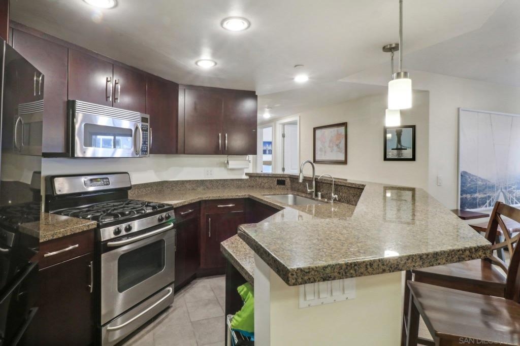 Luxury Hillcrest Condo with Open Floor Plan & Prime Location! This 3rd-floor luxury condo in the heart of Hillcrest offers an open floor plan and modern amenities. The chef’s kitchen features granite countertops, stainless steel appliances, gas cooking, and pendant lighting, with a breakfast counter for casual dining. The spacious primary suite includes a walk-in closet, ceiling fan, and dual sinks in the en-suite bathroom. Enjoy the comfort of central AC, a cozy fireplace, and in-unit laundry. The washer and dryer were just replaced in February 2025, the water heater was replaced in 2023, and the fridge was replaced in 2022. The balcony, accessible from both the living room and secondary bedroom, is perfect for relaxing. Additional perks include underground gated garage parking with a deeded/reserved spot, a large private storage room, and access to a community meeting room. Located near Balboa Park, Downtown, Petco Park, Whole Foods, shopping, dining, and easy freeway access, this condo offers the best of city living with convenience and style!