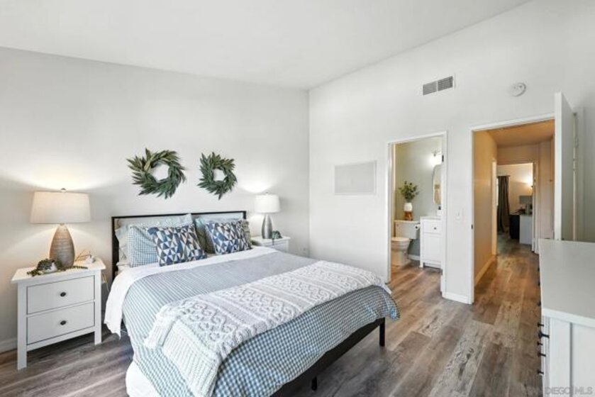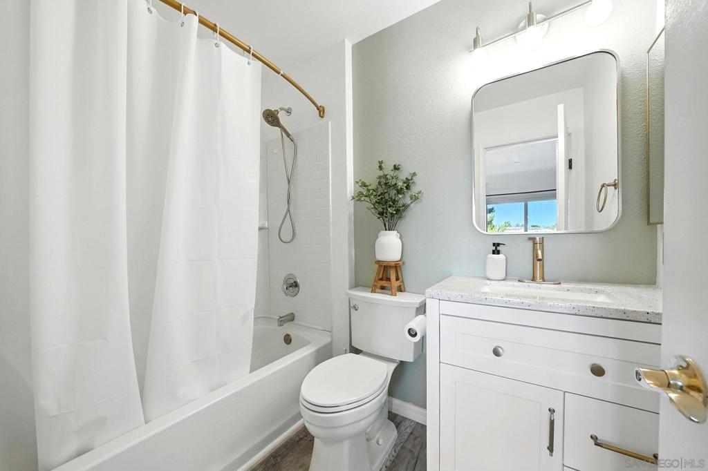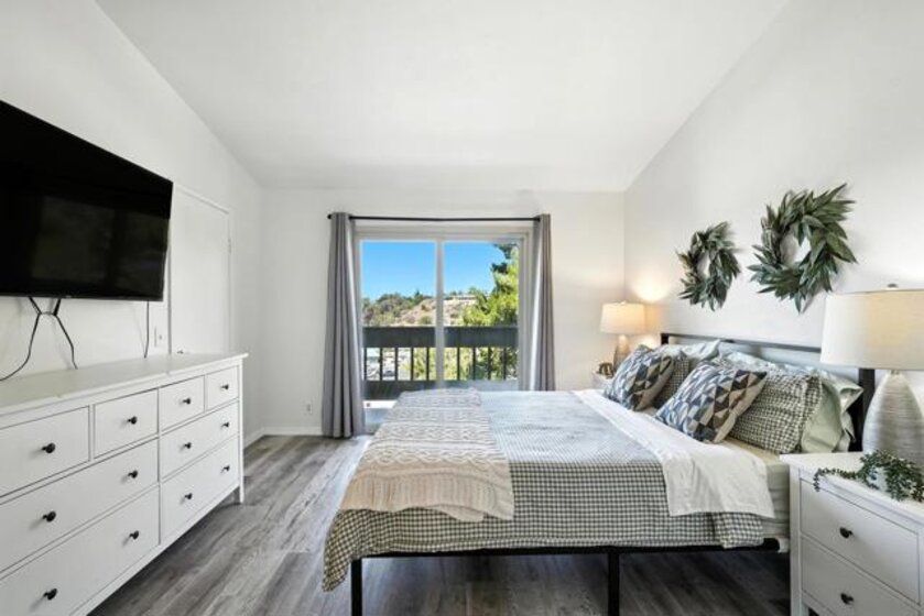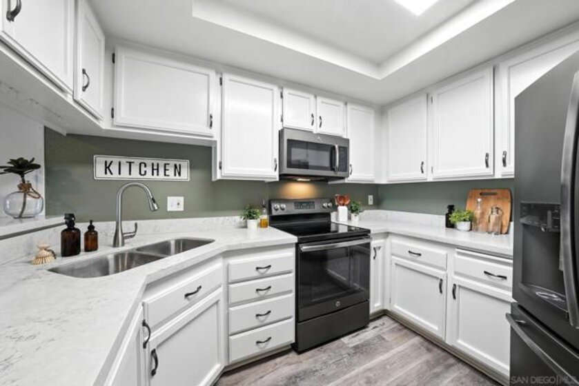 Tucked away in a secure gated community in the heart of the College Area, this beautifully updated townhome offers a perfect blend of comfort, character, and functionality across three thoughtfully designed levels. The main floor is made for entertaining, featuring a bright and modern kitchen, a dedicated dining area, a cozy living room with a fireplace, and a convenient powder room. Upstairs, you'll find a spacious primary suite and a generously sized guest bedroom with its own full bath. The lower level provides a versatile bonus space with a large laundry/storage area, ideal for keeping your home organized. Enjoy the privacy of your own front yard and a spacious balcony overlooking the landscape, plus the ease of an attached 1-car garage and a separate assigned parking space. With low HOA fees covering water, trash service, landscaping, and common area maintenance, this home offers incredible value. The complex is both VA and FHA approved - and best of all, the property comes with an assumable VA loan. This location is centrally located in San Diego with easy access to I-8 and HW-94. A short drive to downtown, the airport, Target, Sprouts, Trader Joes, Walmart, Mission and Fashion Valley Malls, and so much more. SDSU is just minutes away, and University Ave and El Cajon Blvd offer many restaurants and coffee shops right around the corner.