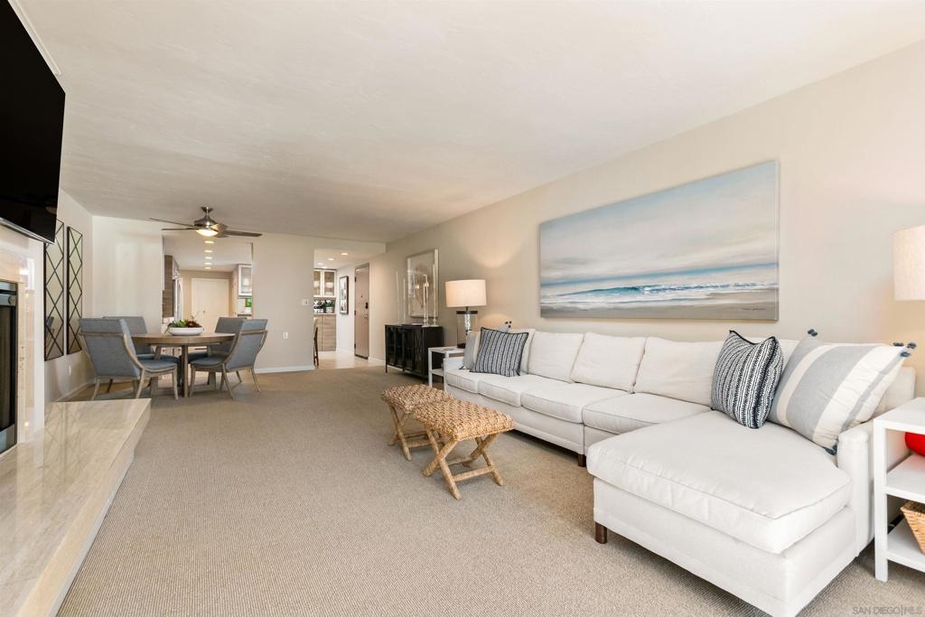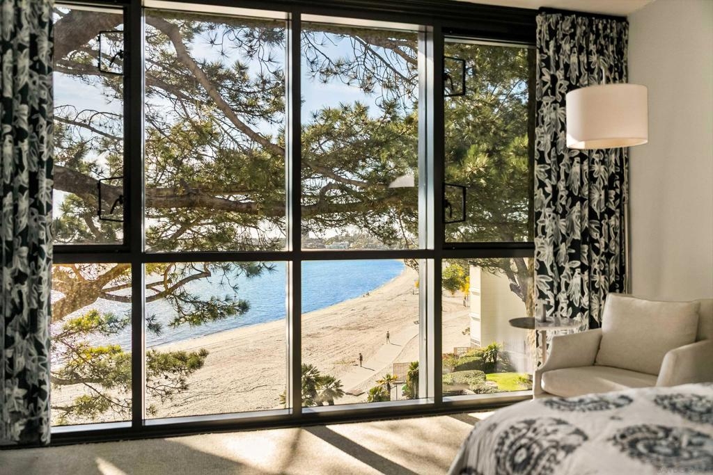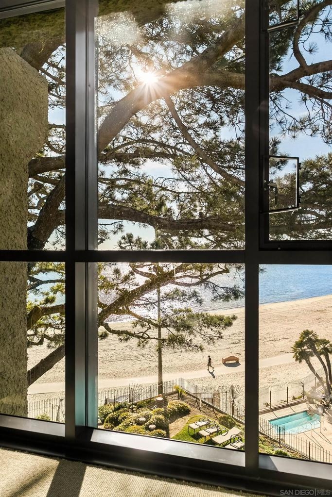 Gracing the shoreline of Sail Bay, this exceptional top-floor penthouse in Bay Scene’s coveted Tower One offers refined waterfront living with sweeping southwest views of the bay and Pacific horizon. Framed by a majestic 150-year-old Torrey Pine, panoramic vistas extend from the living room, dining area, kitchen, and both bedrooms. Spanning approximately 1,559 square feet, the beautifully renovated two-bedroom, two-bath residence is designed for privacy and functionality, with no shared living-area walls, ideal bedroom separation, in-unit laundry, and ample storage. Timeless finishes include a remodeled kitchen with granite countertops, soft-close cabinetry, and stainless-steel appliances. A covered balcony invites you to relax and enjoy the coastal scenery. The home includes two assigned underground parking spaces and access to a secure garage with car-washing area. Bay Scene is Sail Bay’s premier bayfront condominium community, offering resort-style amenities: a heated waterfront pool and spa, BBQ areas, fitness center, clubhouse, kayak and paddleboard storage, elevators, secure entry, and direct access to the sand and boardwalk. Just moments from the ocean, parks, shops, and dining, this rare penthouse delivers luxury coastal living at its finest.