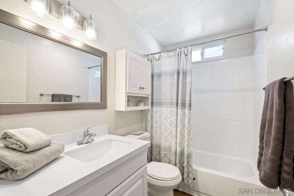 Fully remodeled corner unit 1 bed 1 bath at the bay. Gated community across the street from the Bay. 2 car tandem parking spots next to front entry - one of the spaces is carport covered. 2 large secure storage units in parking area. Adorable remodeled condo features the following upgrades -Dual paned windows, new plantation shutters, laminate flooring, recessed lighting, stainless appliances, ceiling fan, bathroom vanity and countertop, mirrored closet doors in primary. Premier location in PB - walk to Sail Bay, Crown Point Park and all Pacific Beach offers - shopping, restaurants, bike path and more. Move in ready! See Supp remarks for more. Community offers a community patio area with BBQ and bike rack for your beach cruisers. This end unit offers a lot of natural sunlight with wall to wall windows in the living room. Community laundry room with coinless app option. HOA replaced the roof in 2017. Great location and RARE 2 parking spaces for a one bedroom at the beach. Great for the first time buyers or investment opportunity.