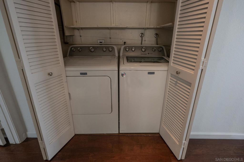 Lovely corner unit condo offering two bedrooms and two full baths in the desirable La Paz community of La Jolla Colony. Enjoy the convenience of a full size Washer/Dryer in the unit. A spacious private patio is located off the living room and a kitchen with custom cabinetry. Large windows provide abundant natural light throughout. The Master suite includes an en-suite bath and a generous walk-in closet. HOA includes Water, Sewer, Trash, Common area and Exterior Bldg Maintenance, Exterior Landscaping. Access to Private Park in La Jolla Colony. Close Proximity to UCSD, UTC, and easy freeway access. Two assigned parking spaces included.