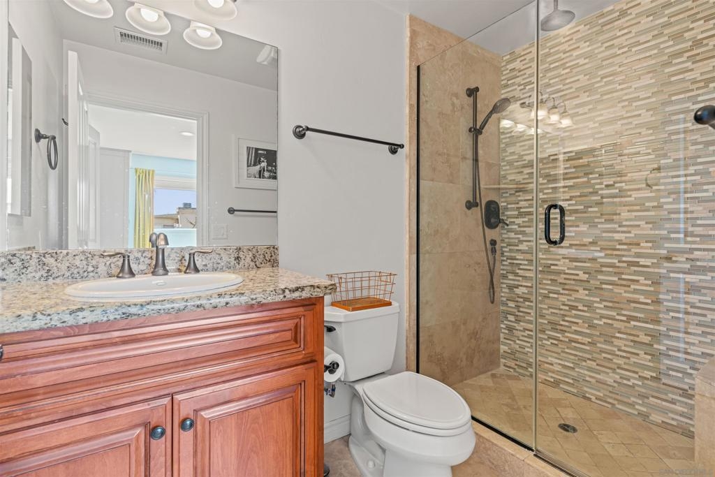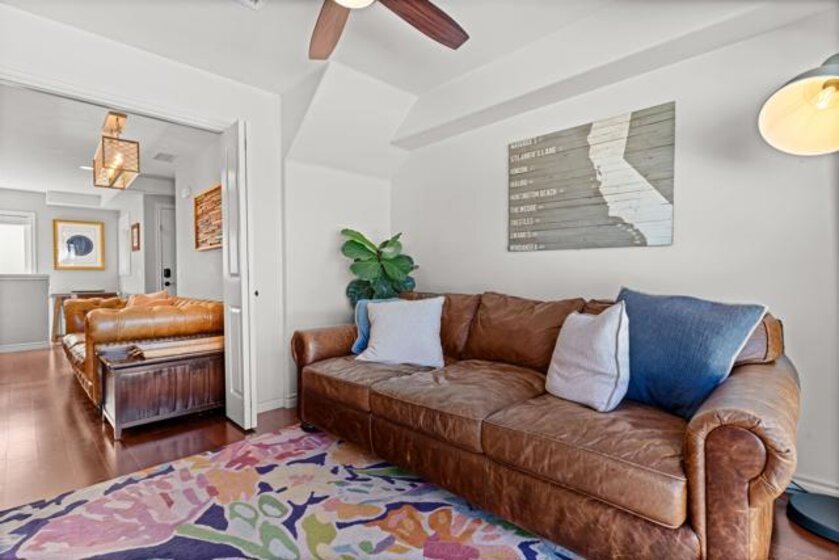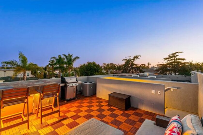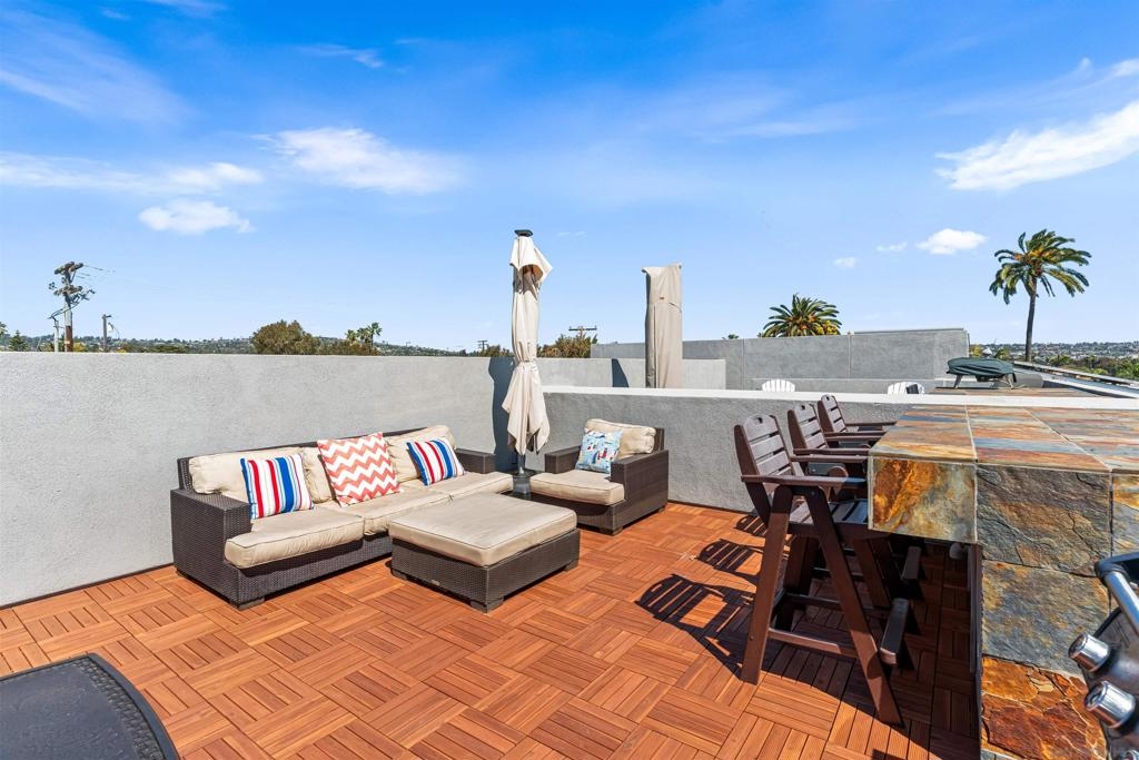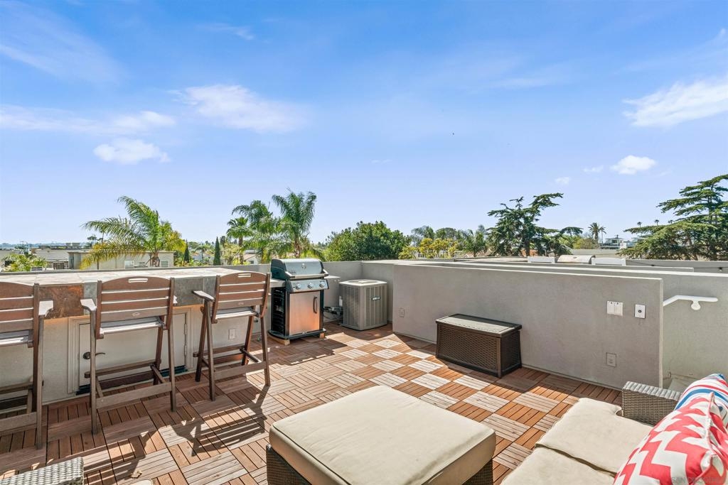 Built in 2010, this beautifully designed coastal residence blends modern luxury with the effortless San Diego lifestyle. Ideally located just moments from the bay, the home enjoys beautiful bay views and exceptional walkability to the waterfront, scenic walking and biking paths, parks, and some of the area's favorite coastal cafés and restaurants. Inside, the home showcases quality craftsmanship, and a bright open floor plan designed for comfortable living and entertaining. Expansive windows welcome natural light and refreshing coastal breezes, and a flexible floorplan with a 3rd bedroom/living space adjacent to the main living room. The kitchen serves as the heart of the home with a spacious breakfast bar, perfect for casual dining or gathering with friends and family. One of the most desirable features of this property is the three-bedroom layout, a rarity in this area at this price point. Each bedroom includes a bathroom, providing both comfort and privacy for residents and guests. Outdoor living is equally impressive. The rooftop deck with slate counters and new wood decking offers stunning bay views and serves as an incredible space for entertaining, sunset dinners, or relaxing in the sunshine. The primary suite also opens to a private balcony, creating another inviting space to enjoy the coastal air. Additional highlights include LOW HOAs $160/month, energy-efficient solar, a tankless water heater, and a RARE side-by-side two-car garage with private off-street access and extra storage—an amenity that is extremely hard to find in this hidden enclave!