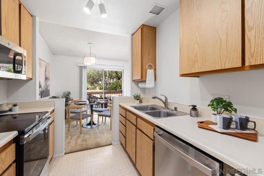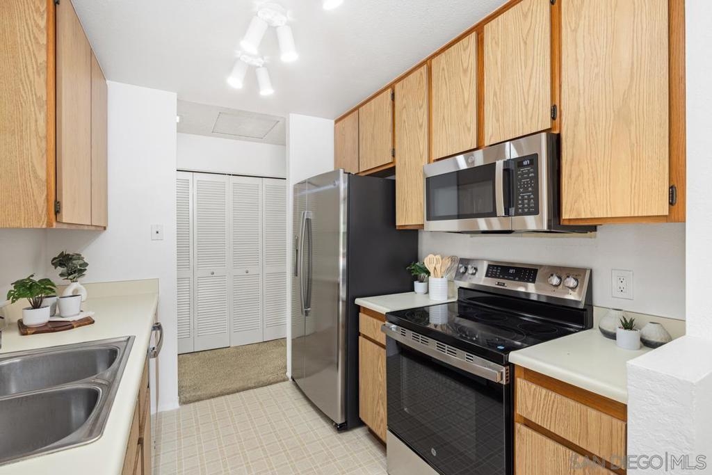 Just what you're looking for! This La Jolla Colony condo has it all: price, value and unbeatable location! This sunny, upper-story unit features two spacious bedrooms and two full baths. The MBR has an ensuite bath and walk- in closet with storage. The kitchen has all NEW stainless steel appliances, and the washer and dryer are inside the unit for your convenience. There are two parking spaces with storage and a lovely pool and spa are located within the complex. Walk to shopping, markets, and restaurants. Easy access to freeway, trolley, bus and bike trails. Minutes from UCSD, Scripps, VA, UTC and beaches. Superior value in this popular neighborhood!