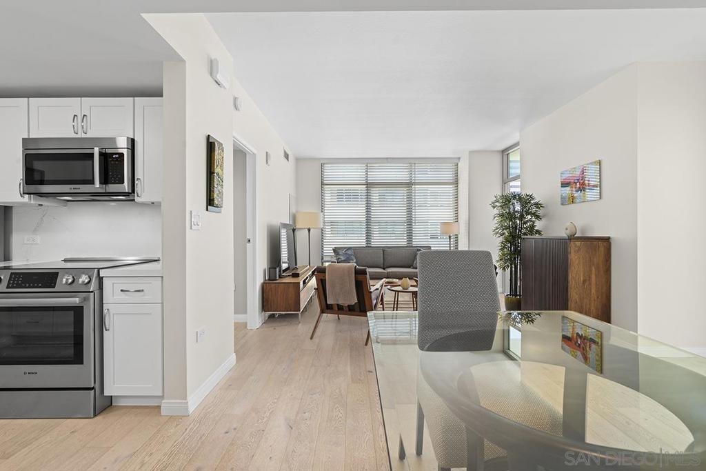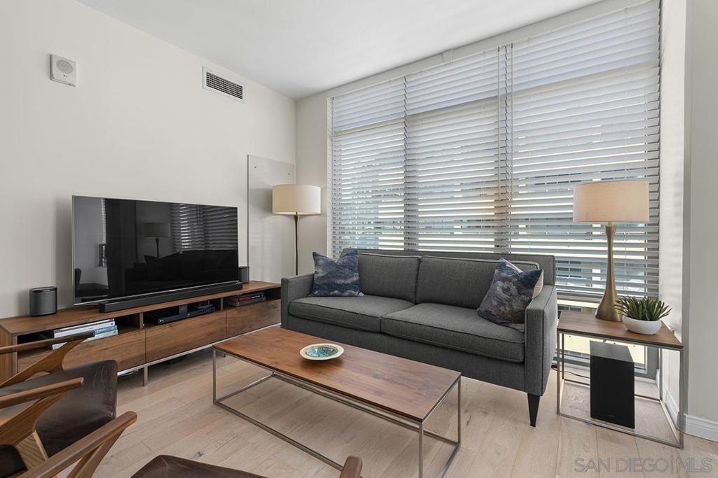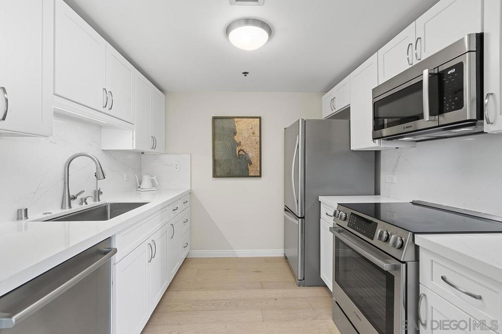 Little Italy Stunner! This immaculate 2-bedroom, 2 bath CORNER UNIT on the 12th floor of Acqua Vista is bathed in natural light and shows like a model home! Located in the vibrant heart of Little Italy - Downtown San Diego’s most sought-after neighborhood, and just moments away from countless restaurants, nightlife hotspots, chic cafes and the beloved Saturday Farmer’s Market make this the perfect residence for your new urban lifestyle. Split-bedroom open floor plan with a spacious living and dining area, featuring sleek Reward Barbados European oak engineered hardwood flooring. The remodeled kitchen boasts white cabinetry, Silestone quartz countertops, a stainless undermount sink with Culligan osmosis reverse system, and Bosch & Whirlpool stainless appliances. Enjoy a covered balcony with city views—without the hot afternoon sun. Additional upgrades include custom shutters and wood blinds, newer washer/dryer, and added storage. Valet parking is included for one vehicle, and a second spot may be leased. Building amenities include 24-hour lobby attendants, an 8th-floor pool and hot tub, and a fully equipped exercise room. Downtown San Diego's Little Italy is a vibrant culinary and cultural hotspot, beloved for its rich history and modern flairs. Classic restaurants like Mona Lisa and Civico 1845, alongside new favorites Ironside, Juniper & Ivy, and Craft & Commerce, make it a go-to for local foodies. The neighborhood is filled with cafes, bakeries, boutiques, bars, and wine shops, perfect for an evening wander. The Little Italy Association also keeps the calendar full with community events such as art walks, car shows, the yearly Little Italy Festa, and a vibrant Farmers Market on Wednesdays and Saturdays. Don’t forget the NoLi Art & Design District, a vibrant hub that includes a collection of retail outlets, designer boutiques, and art galleries, all boasting unique home items and rare discoveries to help you curate the perfect ambiance for your new residence. Acqua Vista features complimentary valet parking for residents, 24/7 security and lobby attendants, a fitness center, and an 8th floor pool and spa deck, barbecues and lounge area. Residents can also take advantage of the community’s electric vehicle charging stations. *Have a 2nd vehicle? The HOA leases additional parking spaces too!*