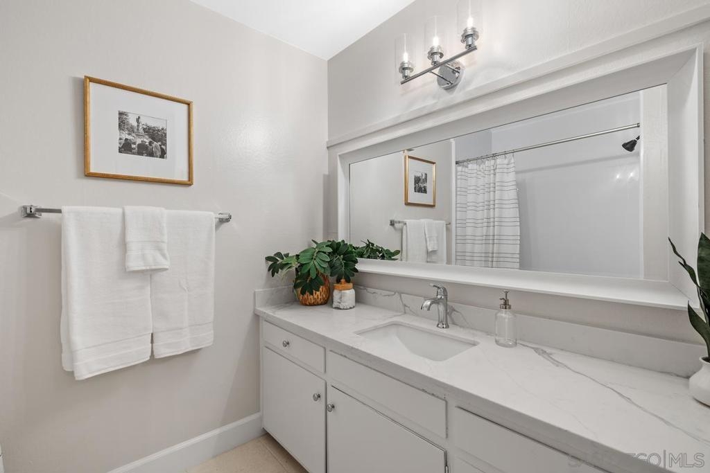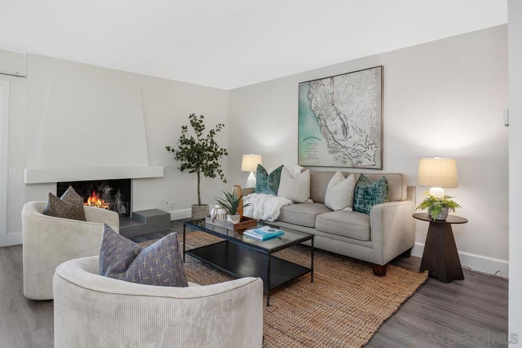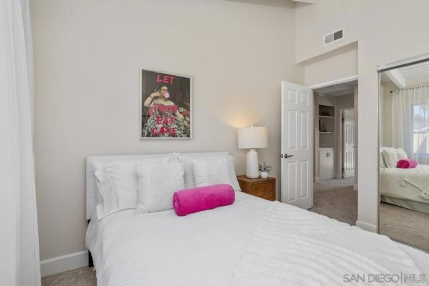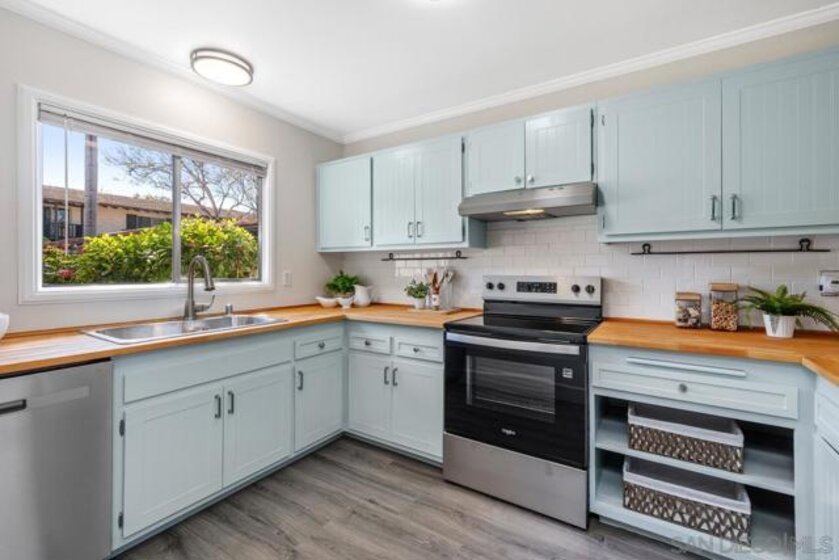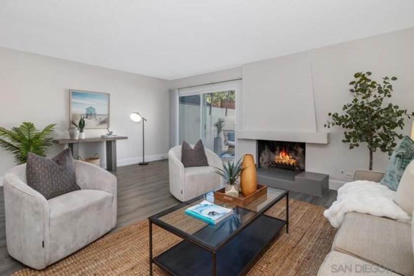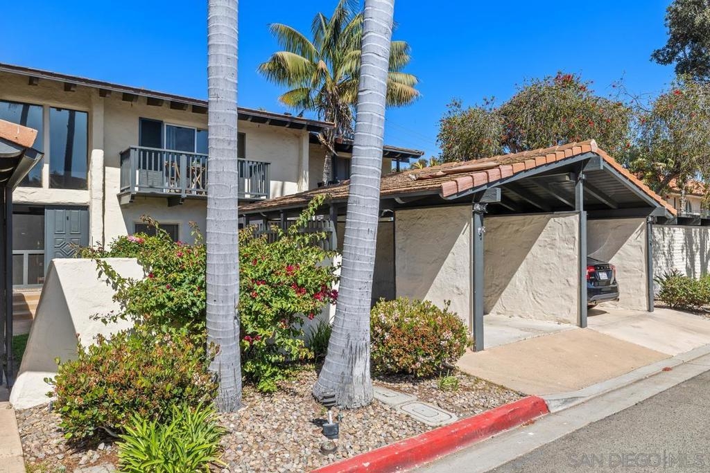 Located in one of Point Loma’s most coveted townhome communities, Loma Riviera offers timeless Spanish architecture and beautifully maintained grounds. Welcome to this elegantly updated 3-bedroom featuring a newly refinished kitchen with butcher block-style countertops, brand new stainless steel appliances including dishwasher, range/oven, and hood, along with modern hardware and decorative accents. Newly refinished bathroom with subtle Turrazzo tile flooring and brand new marbled counter top, decorative mirror, lighting and new sink and faucet. The flexible floor plan includes a formal dining area that can be enjoyed as a separate space or integrated into the main living area. The living room features a fireplace and new sliding glass door that opens to a private patio, providing access to a full-size laundry room with storage and a brand new dryer. The downstairs living areas are finished with luxury vinyl plank flooring, while brand new carpet extends throughout the stairs and bedrooms. The entire interior has been recently repainted and new decorative lighting fixtures added. Upstairs, the bedrooms feature vaulted wood-beamed ceilings, abundant natural light, and thoughtful details throughout. The primary bedroom offers a private balcony, walk-in closet, and an additional traditional closet. Secondary bedrooms are bright and include mirrored closet doors. Additional features include a charming front porch, 2 covered carport spaces, one directly in front of the home, and a second nearby. The Loma Riviera community is known for its lush, well-maintained landscaping. Located in one of Point Loma’s most coveted townhome communities, Loma Riviera offers timeless Spanish architecture and beautifully maintained grounds. Welcome to this elegantly updated 3-bedroom featuring a newly refinished kitchen with butcher block-style countertops, brand new stainless steel appliances including dishwasher, range/oven, and hood, along with modern hardware and decorative accents. Newly refinished bathroom with subtle Turrazzo tile flooring and brand new marbled counter top, decorative mirror, lighting and new sink and faucet. The flexible floor plan includes a formal dining area that can be enjoyed as a separate space or integrated into the main living area. The living room features a fireplace and new sliding glass door that opens to a private patio, providing access to a full-size laundry room with storage and a brand new dryer. The downstairs living areas are finished with luxury vinyl plank flooring, while brand new carpet extends throughout the stairs and bedrooms. The entire interior has been recently repainted and new decorative lighting fixtures added. Upstairs, the bedrooms feature vaulted wood-beamed ceilings, abundant natural light, and thoughtful details throughout. The primary bedroom offers a private balcony, walk-in closet, and an additional traditional closet. Secondary bedrooms are bright and include mirrored closet doors. Additional features include a charming front porch, 2 covered carport spaces, one directly in front of the home, and a second nearby. The Loma Riviera community is known for its lush, well-maintained landscaping and resort-style amenities, including a heated pool, expansive grassy areas, BBQ spaces, and a clubhouse with kitchen and gathering areas.