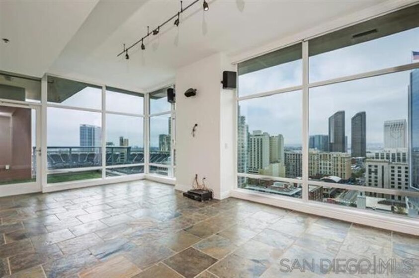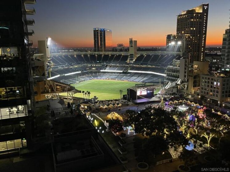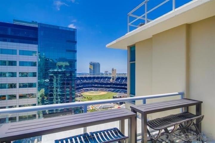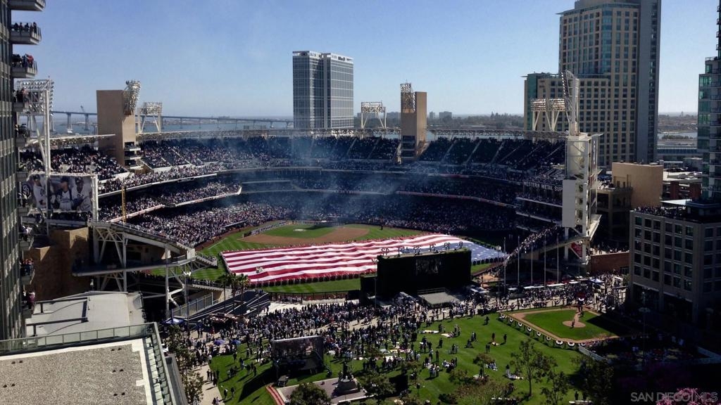 PREMIERE PETCO VIEW CONDO... See Home Plate & watch the game! Hear the crowd and relax in the comfort of your own home or walk across the street and YOU'RE IN THE BALLPARK! Stunning bay, city & ballpark views from TWO private balconies AND from inside this Penthouse residence... Definitely one of the most DRAMATIC & EXCITING views you'll ever see! Dynamite location in East Village, walk to everything. Arguably one of the BEST POSITIONED buildings in East Village and clearly a FAN FAVORITE! See Supplement... Well-appointed 2BD/2 BA with slab granite counters, stainless appliances, TWO generous balconies and washer/dryer in unit. Desirable location in East Village - Across the street from upscale fitness center, walk to coffee, restaurants, shopping and entertainment. Secure building with fitness center, community room, rooftop BBQ area that features large patio and views into Petco. TWO parking spaces in secure underground garage and storage area included. Rare opportunity!