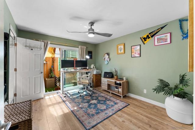 Step inside and welcome home to this sharp 2 bedroom, 2 bathroom single level home in a well maintained, small 7 unit gate community walking distance to restaurants, bars and shops, even a Michelin Key award winning hotel. This North North Park home is even walking distance to University Heights favorites! San Diego living at it’s best with low homeowner fees but lots of smarts, charm and character. This move in ready ground level unit has no stairs but a beautifully and professionally remodeled kitchen that looks onto it’s private back yard/patio! Two nice bedrooms and two full (tub and shower) bathrooms, one attached, and both BRs enjoy spacious closets upgraded by CALIFORNIA CLOSETS! Brand new (2022) dual paned slider door from primary bedroom to the back outdoor area. Also new dual paned windows in living room, kitchen and bedroom; new plantation shutters; luxury vinyl plank flooring. NEST thermostat; YALE Smartlock; Welcome home! See supplement for more This home truly does have it all...from its walkability to restaurants, coffee shops and bars on El Cajon Blvd. and 30th St. (Lafayette Hotel just got a Michelin Key; Cafe Madeleine; Thai Time NP; Working Class; Pour House & Belching Beaver NP; Leila; Observatory NP; Part Time Lover; COLLINS & COUPE & more!!) to the beautifully updated flooring, open kitchen with tons of counter space, gorgeously remodeled bathrooms, recessed lighting, in-unit washer/dryer, central air conditioning, ceilings fans in 3 rooms, private patio yard off the primary bedroom, cozy fireplace for those quiet nights at home, and 3 (tandem) parking spaces, it’s going to be hard to beat this one! Tastefully updated: Sellers replaced back (primary) bedroom slider door with brand new dual paned. They also recently remodeled the entire kitchen! NEW in 2025: Edward Martin Porcelain checkered tile; new quartz countertops; new GE oven with air fry; new Zephyr under cabinet range hood; new GE French Door refrigerator with filtered water and ice maker; new kitchen sink work station with glass rinser feature; new instant hot water dispenser! Bosch dishwasher. Central A/C. This gem is centrally located in the heart of one of San Diego’s most desirable neighborhoods, North Park! Come take a look for yourself and experience all that this lovely home and neighborhood have to offer.
