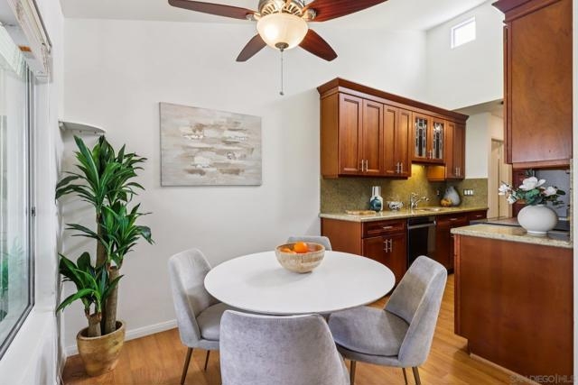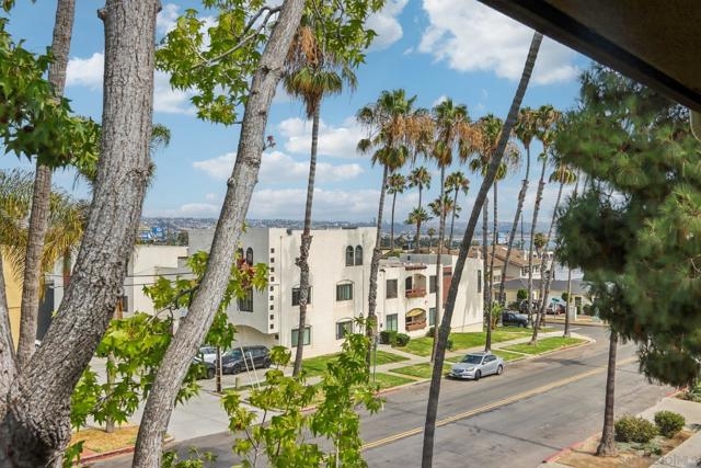 Soaring vaulted ceilings, clerestory windows, and an open floor plan create a bright, airy vibe in this spacious top-floor condo. The living room, dining area, and kitchen flow seamlessly onto an extra-long balcony with Bay Views! The updated kitchen features nearly new Samsung Smart appliances and smart-home compatibility, while the split dual-primary suite layout offers flexibility for guests or roommates. Move-in ready with abundant closet space, a reverse osmosis water system, and two secure parking spaces (one in the garage). Located in The Plaza, a beautifully landscaped gated community with a serene pond, two pools, two spas, tennis courts, a clubhouse, and multiple outdoor gathering areas. Just minutes from both the beach and the bay, you’ll enjoy the best of Pacific Beach living — from boardwalk strolls and water sports to vibrant dining, shopping, and nightlife.