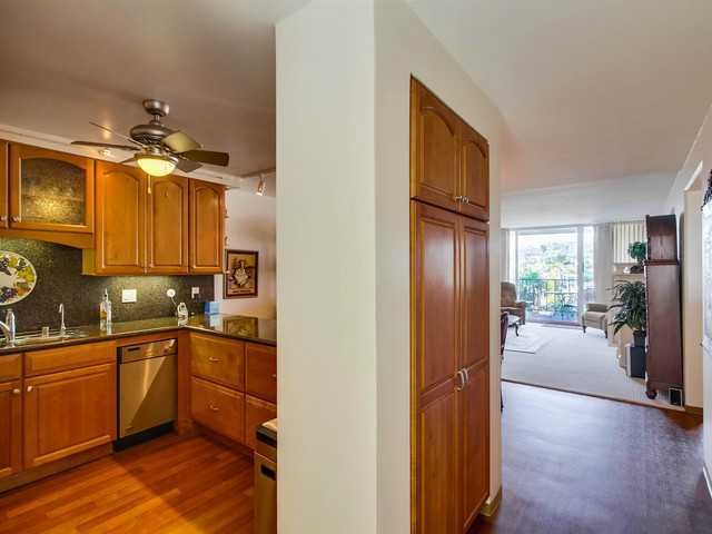 Stunning remodel in Pacific Towers. Custom Kitchen with beautiful cabinetry, granite, stainless appliances, new pantry & more. Both baths beautifully remodeled with new cabinets, new fixtures and lighting. Upgraded flooring throughout, custom plantation shutters and VIEWS to die for!! Three blocks to the beach and all the best of beach living, but located in a quiet area off Cass & Wilbur. Huge balcony with beautiful views to the north and westerly sunset views. Neighborhoods: Pacific Beach Other Fees: 0 Sewer: Sewer Connected Topography: LL