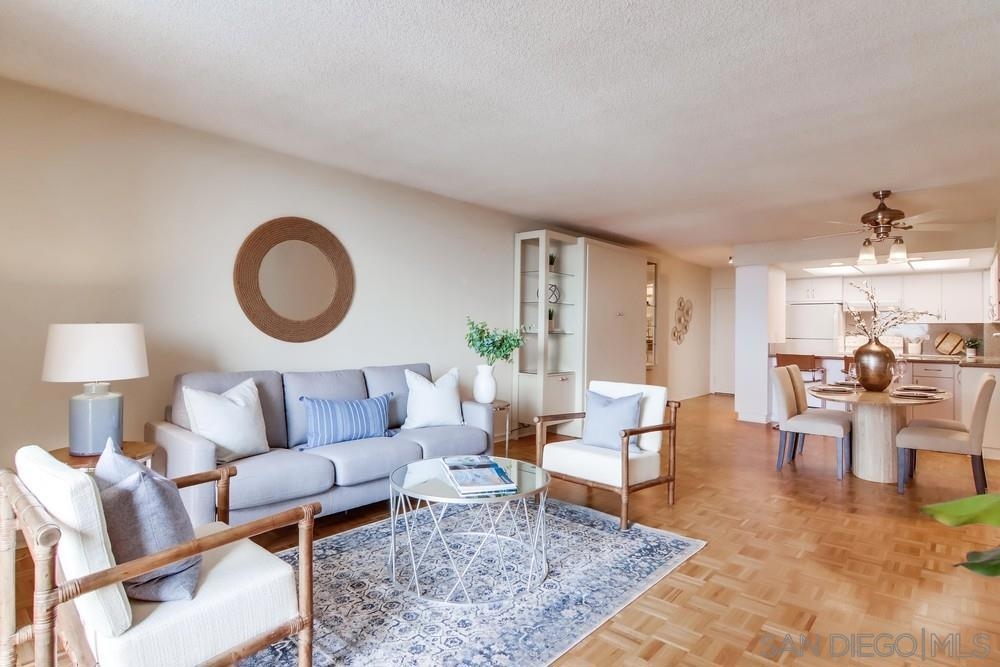 Rarely available Western facing Pacific Towers condo 3 SHORT BLOCKS TO THE BEACH! Hardwood parquet floors, a remodeled kitchen, storage galore, and THAT SPECTACULAR VIEW are just a few of the MANY upgrades in this unit!!! European white cabinetry with soft close, full extension drawers and cabinets, silestone counters with a large pristine sink, brand new dishwasher, built in wine rack, leutron lighting, and bar seating create define this remodeled kitchen space. Look out into the spacious great room... complete with a dining area, ceiling fan, new custom shutters, and display shelving that doubles as a murphy bed for guests! The master bedroom has unparalleled ocean views, 2 built in closets, and new custom shutters for complete privacy when desired. Shelf after shelf of storage allows plenty of room for pantry items, towels, and belongings outside of the bathroom and kitchen. The bathroom has oversized mirrored medicine cabinets, a new low flow shower head, grab bars outside of the bath, and beautifully tiled flooring and countertops. Dual pane windows throughout the unit provide excellent insulation and sun protection and eliminate sound. Feel secure with a new top of the line front door lock, your own parking spot in the gated parking garage, and your own large storage locker in the 7th floor laundry room. Experience Pacific Towers, one of the two high rise buildings in Pacific Beach, with highly desired amenities and high speed elevators. Brand new washers and dryers in all laundry rooms, a trash chute with daily trash pick up, a pool, a club house room with new exercise equipment, showers, sauna, kitchen, and free wifi, and an on site manager in the lobby. HOA dues include cable TV, water, and trash pick up. Walk three blocks to the gorgeous Pacific Ocean. Experience all that North Pacific Beach has to offer. Hurry, this one won't last! Complex Features: ,,,,, Equipment: Garage Door Opener Other Fees: 0 Sewer: Sewer Connected Topography: LL