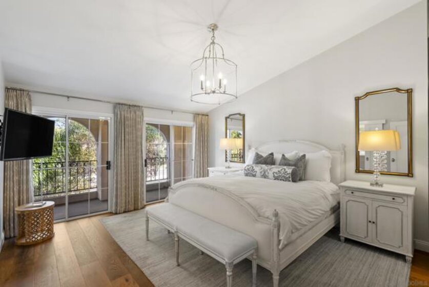 Tucked within the elegant, gated community of La Florentine at Renaissance, this refined townhome offers a quiet, upscale lifestyle. Inside, a spacious and open floor plan is elevated by high ceilings and hardwood oak floors throughout. The kitchen is designed for both everyday living and entertaining, featuring custom white cabinetry with embedded drawers, quartz countertops, a large island, Thermador appliances, and a wine refrigerator. Thoughtful upgrades include recessed lighting, an alarm system, tile fireplace, custom curtains, and a full house water filtration system. Just outside, a generous front patio with slate flooring provides the perfect setting for barbecuing, dining Al Fresco, or a morning coffee. The primary suite is a true retreat with a large walk-in closet, private balcony, and a spa inspired bathroom that includes a soaking tub and shower behind a large frameless glass wall and marble flooring. Additional highlights include an oversized two car garage with storage on the lower level, as well as access to community amenities including a pool and hot tub. Set in the heart of UTC, this beautiful Italian style village offers a rare blend of privacy, high end living and everyday convenience. Residents are moments from a multitude of restaurants, the UTC shopping mall, nearby parks, walking trails, and everyday essentials. The location also provides close proximity to beaches, UCSD, and highly rated San Diego Unified schools.