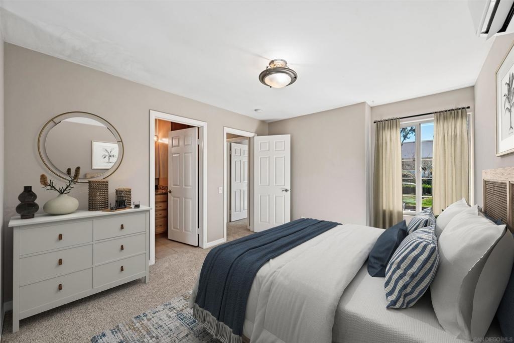 Beautiful Balboa Ridge top-floor, corner-unit condominium located in the vibrant community of Clairemont, located just down the street from numerous popular restaurants and shops and minutes to Mission Bay, Pacific Beach, La Jolla and downtown San Diego! As you enter through the secure, gated community and arrive at the home, you feel welcomed the moment you gaze upon an interior offering abundant natural light, new interior paint and new carpeting. The spacious living room features soaring ceilings and flows seamlessly to a private balcony—perfect for entertaining, dining al fresco, or simply relaxing. Additional highlights include a convenient storage closet, a dedicated dining area, and a well-appointed kitchen with granite countertops and stainless steel appliances. The primary suite offers a comfortable retreat with an ensuite bathroom featuring granite countertops and a walk-in shower. Two additional bedrooms are located nearby, along with a secondary bathroom complete with granite counters and a tub/shower combination. Additional highlights include windows in all bedrooms adding the enjoyment of warm natural light and cool coastal breezes, three split heating and air systems for year-round comfort, in-unit laundry with a new washer and dryer, and extra storage space. Residents of Balboa Ridge enjoy a pet-friendly living environment with resort-style amenities, including swimming pools, a spa, BBQ and picnic area, a fully-equipped fitness center, and a clubhouse. Set in one of San Diego’s most desirable neighborhoods, this move-in ready home offers the perfect blend of comfort, style, and urban convenience. Welcome home!