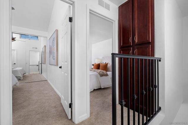Conveniently located in a gated community within walking distance to all the restaurants and stores near Balboa & Genesee, this location is highly sought after. This unit is 2 beds/1.5 baths and minutes from the 805/5/52 freeways and about 5 miles to the beach. The home features new carpet upstairs and refinished flooring downstairs, a fresh coat of paint, in-unit laundry, one assigned/covered parking space, vaulted primary bedroom ceiling, and comes with all appliances. The unit is two levels, with no neighbors above or below, and both bedrooms upstairs. Complex features 3 swimming pools, hot tub, clubhouse, fitness room, and barbecues.