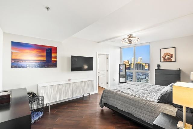 Enjoy breathtaking bay and city views from this beautifully remodeled 13th-floor residence in the heart of the Marina District. This spacious 2-bedroom, 2-bath home offers two patios and two parking spaces, each with its own EV charger. Renovated in 2023 with over $200,000 in upgrades, including new cabinetry that added extra storage throughout the unit, Continuous flooring throughout the unit, lighting, plumbing fixtures, and appliances. Highlights include a modern kitchen with luxury tile finishes, large pantry adjacent to the kitchen, quartz countertops, Alexa-enabled refrigerator and smart oven, custom walk-in closet, fireplace, blackout shades, and Wi-Fi and Bluetooth-enabled color-changing ceiling lights that can be controlled via SmartLife or SmartThings app Ideally located in the heart of the Marina District, Horizons offers easy access to Petco Park, the Gaslamp Quarter, San Diego Bay, the Marina, shopping, dining, and entertainment. Community amenities include a pool, spa, BBQ area, fitness center, conference room, club room, and 16 guest parking spaces. This residence includes two separate parking spots and a storage unit. Horizons has recently been refreshed with beautifully remodeled lobbies, upgraded hallways, and new unit doors with convenient keypad access.