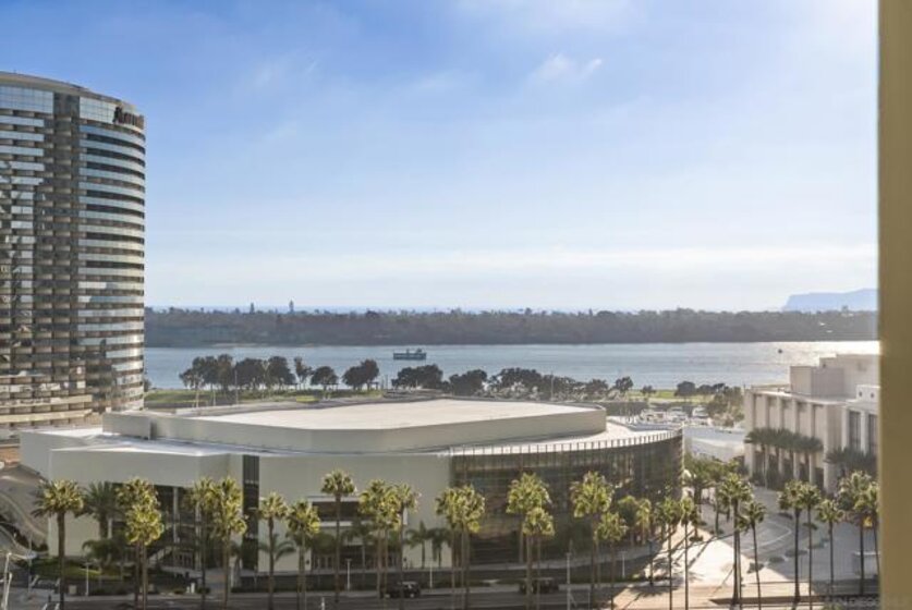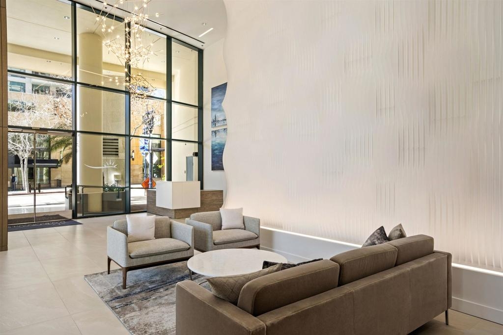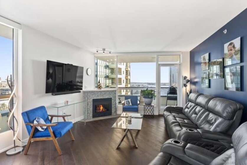 Sweeping panoramic Bay and City skyline views define this beautifully remodeled Marina District residence. This spacious 2-bedroom, 2-bath home offers two private patios perfectly positioned to capture stunning water views and seamless indoor-outdoor living. Over $200,000 in premium upgrades completed in 2023 include custom cabinetry with expanded storage, continuous flooring throughout, and updated lighting and plumbing fixtures. The redesigned kitchen features quartz countertops, designer tile, a generous pantry, and high-end smart appliances, including an Alexa-enabled refrigerator and smart oven. Additional highlights include a custom walk-in closet, fireplace, blackout shades, Wi-Fi/Bluetooth color-changing ceiling lights, and two secured parking spaces, each with its own EV charger. A rare opportunity to enjoy Downtown San Diego living in the heart of the Marina District. Ideally located in the heart of the Marina District, Horizons offers an unbeatable downtown lifestyle just steps from the New Children’s Museum, Martin Luther King Jr. Promenade, Seaport Village, Petco Park, the Gaslamp Quarter, San Diego Bay, and the Marina. A children’s park and dog park are located directly behind the community. Resort-style amenities include a pool, spa, BBQ area, fitness center, concierge, security, billiard room, conference and club rooms, and 16 guest parking spaces. Everyday convenience is built in with retailers just an elevator ride away, including a bank, dry cleaner, Postal Annex, coffee shop, and more. The building has been refreshed with beautifully remodeled lobbies, upgraded hallways, and new unit doors with keypad access, all within walking distance to transit, dining, shopping, and Ralphs Signature Market.