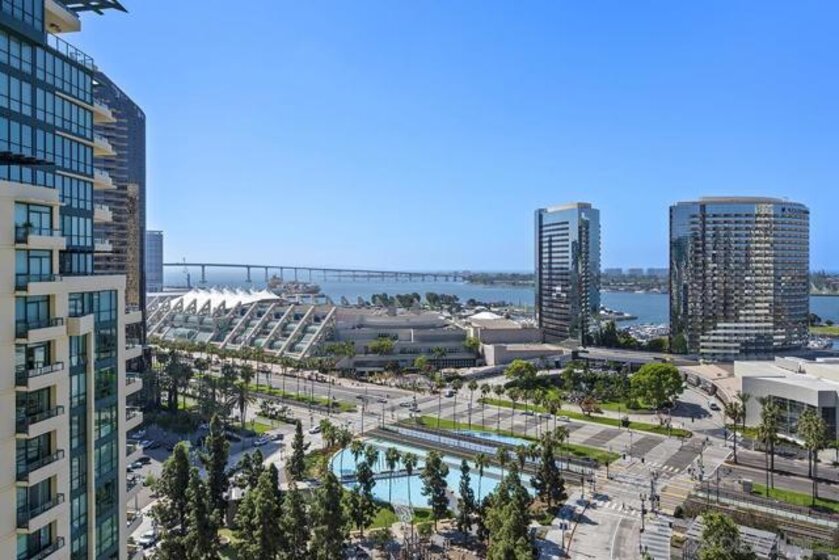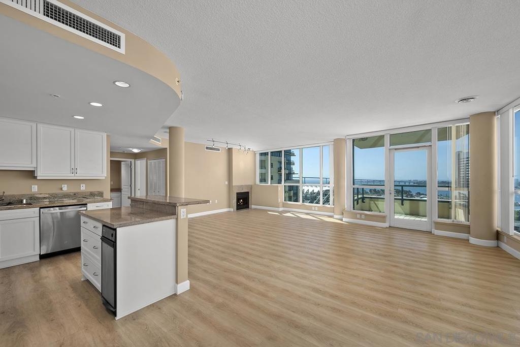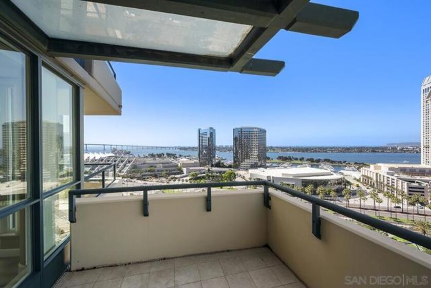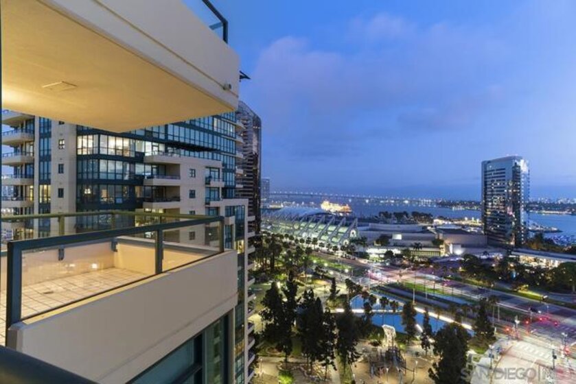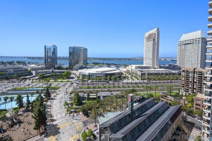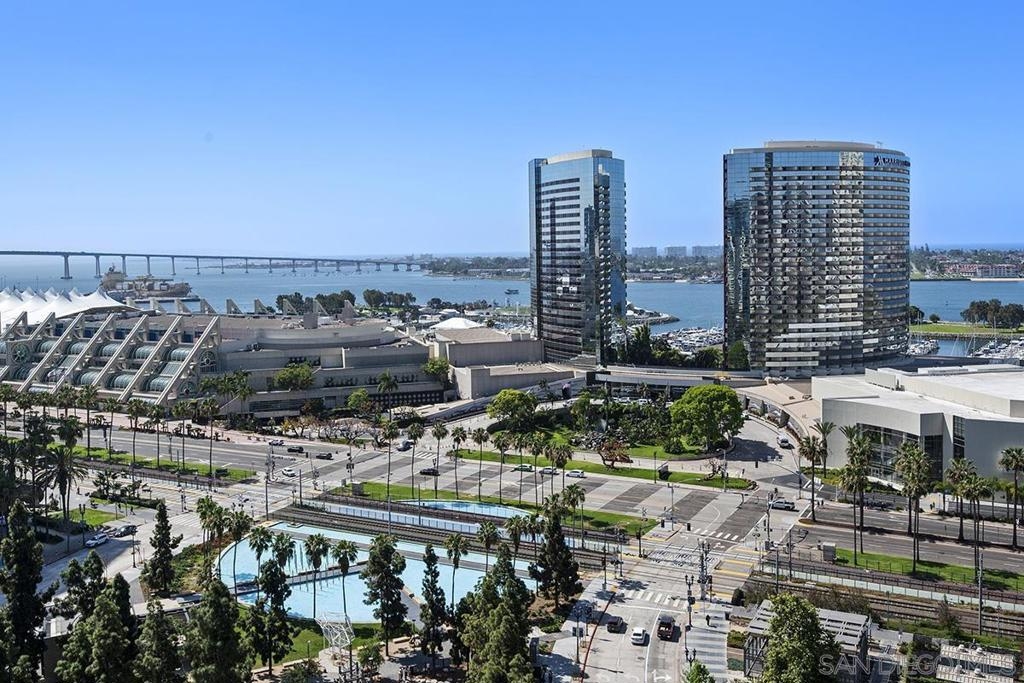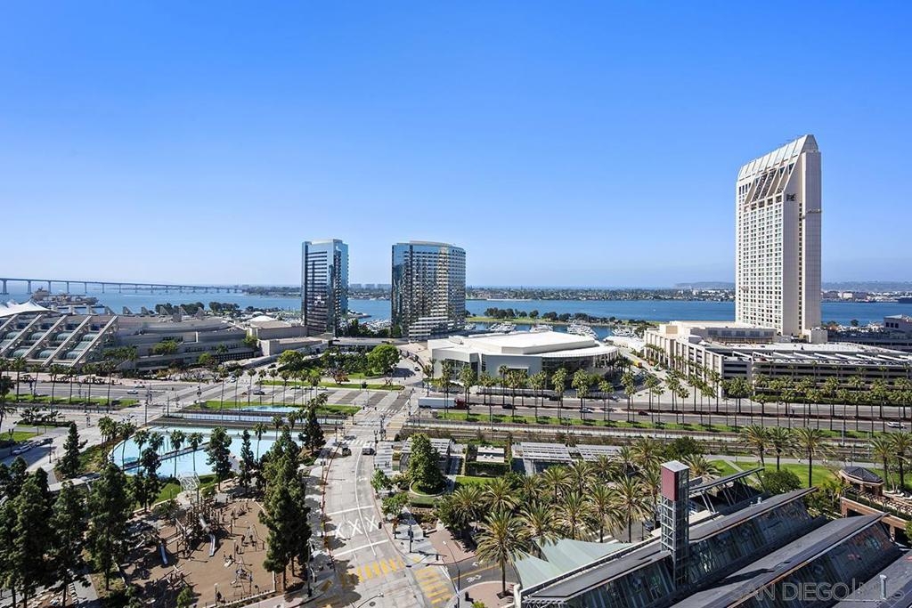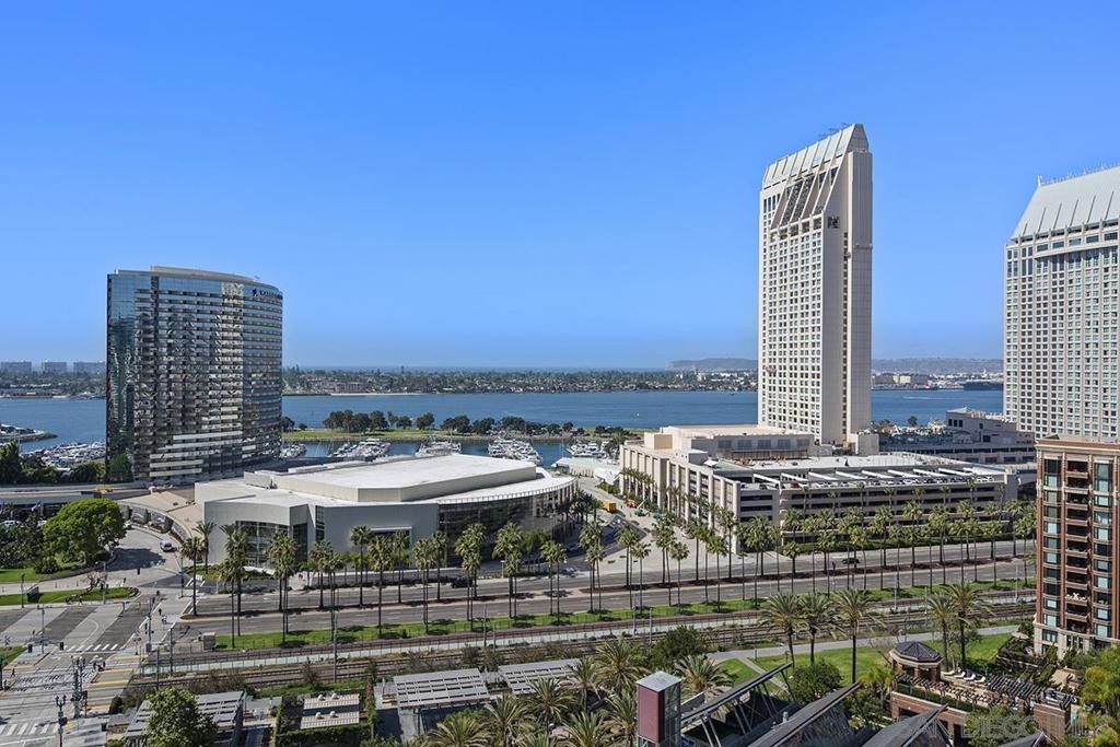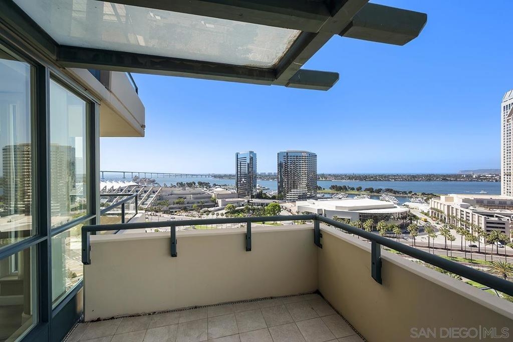 Few addresses in Downtown San Diego deliver this kind of perspective. Positioned on the 18th floor of Horizons, this southwest corner residence offers sweeping views of the bay, ocean, Point Loma, and Coronado that stretch as far as the eye can see. Whether you're watching sailboats drift across the water or the city lights come alive at dusk, the scenery here changes by the hour and never gets old. Three rare balconies - one measuring 25x10 - are among the home’s defining features, accessible from nearly every room, including the primary bedroom, and offering effortless access to breathtaking views. Floor-to-ceiling windows fill the open-concept living space with natural light throughout the day, while easy-care flooring and a fireplace create a warm, grounded atmosphere. The well-appointed kitchen features stainless appliances, generous cabinetry, and recessed lighting, a setup that works equally well for quiet weeknight dinners and larger gatherings. The primary suite connects to the main balcony and has its own private outdoor space, a rare bonus at this level. The ensuite bath includes dual vanity, soaking tub, and step-in shower. The second bedroom functions beautifully as a guest room or a dedicated home office with an inspiring backdrop. Two side-by-side parking spaces near the elevators and a storage unit complete the package. This is Marina District living at its finest, where the views are genuinely part of the lifestyle. The Horizons boasts an unbeatable location in the Marina District, placing you steps from the New Children’s Museum, the scenic Martin Luther King Jr. Promenade, and Seaport Village. And with both a children's park and a dog park right behind the community, fun is always within easy reach for kids and furry friends alike. Resort-style amenities include a pool, spa, fitness center, concierge, security, billiard room, conference room, and guest parking. Convenience is built in, with an array of retailers just an elevator ride away—a bank, tanning salon, dry cleaners, Postal Annex, and a coffee/sandwich shop. Plus, you're within walking distance of bus and trolley lines, top-rated restaurants, shopping, and a 24-hour Ralphs Signature Market just around the corner.