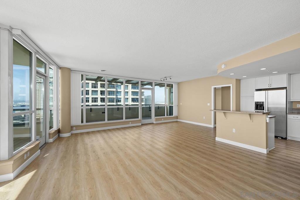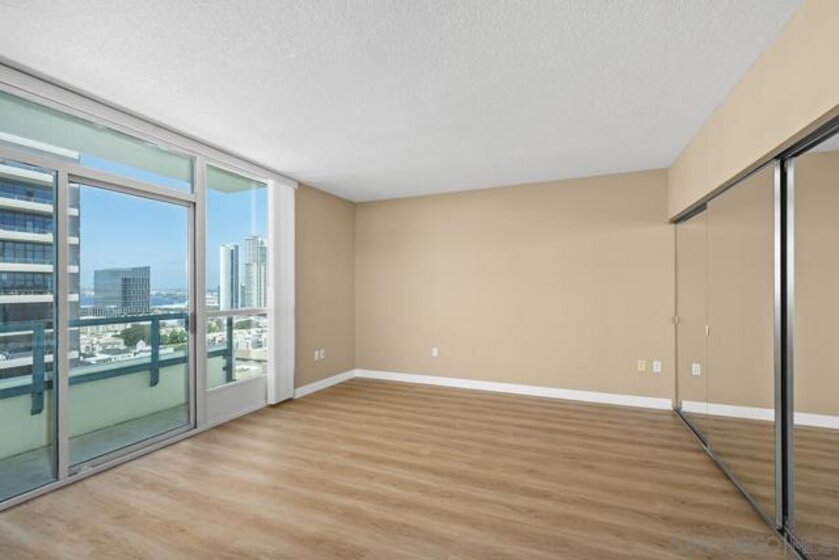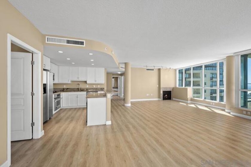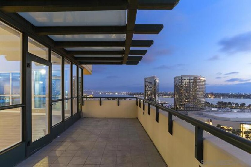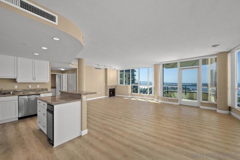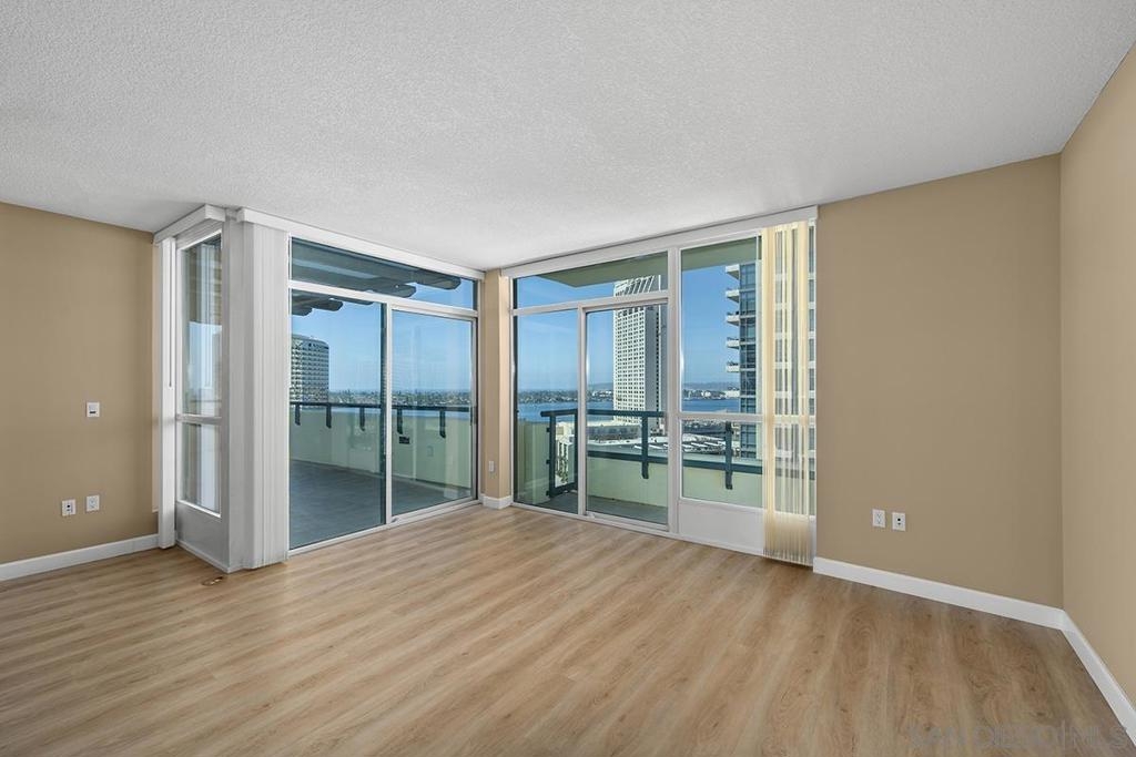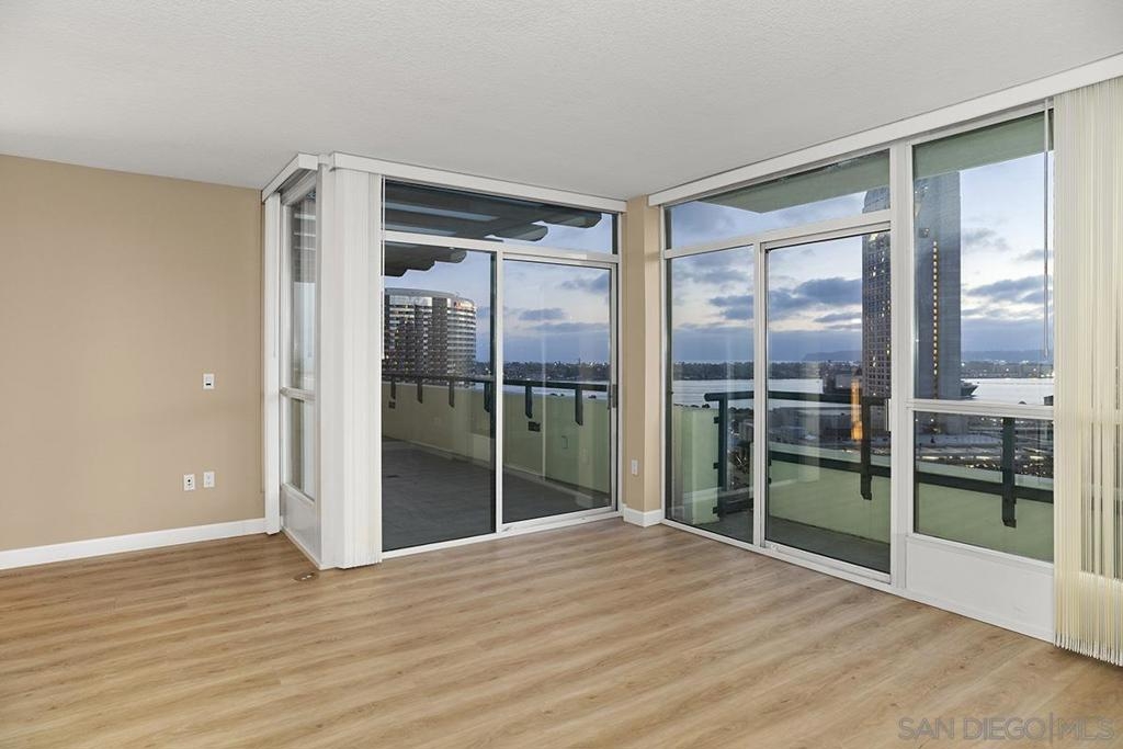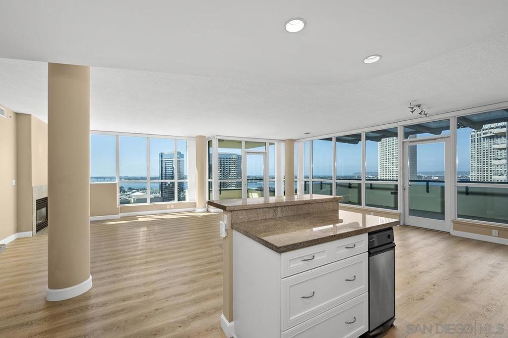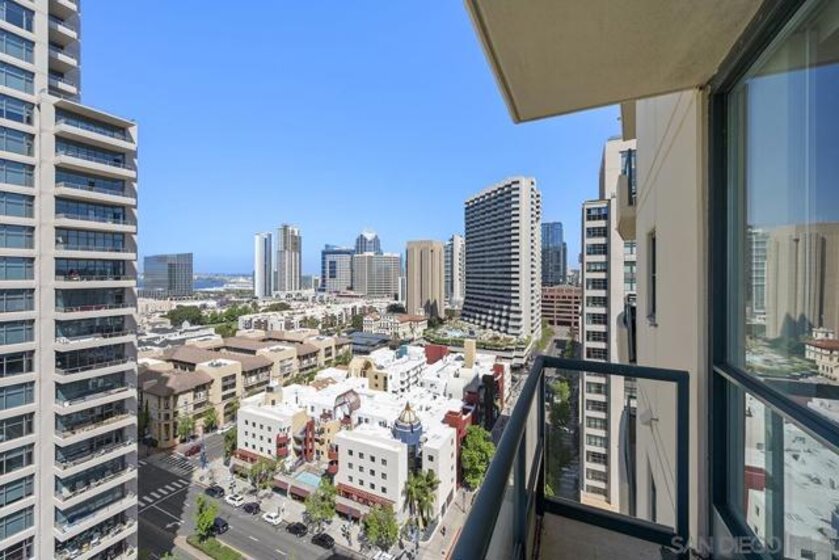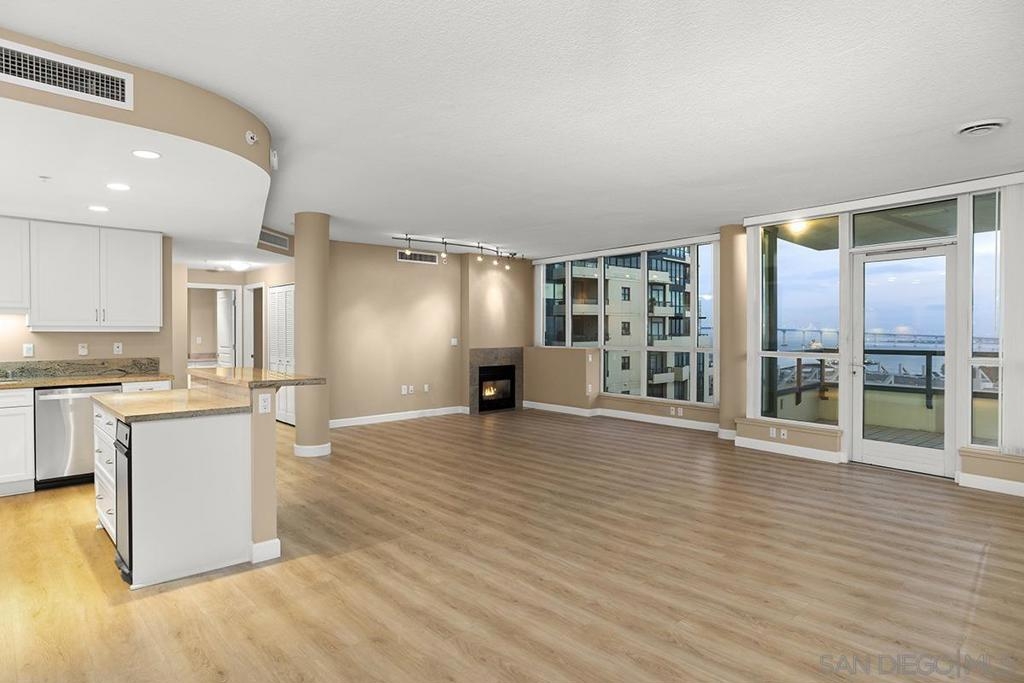 Few addresses in Downtown San Diego deliver this kind of perspective. Positioned on the 18th floor of Horizons, this southwest corner residence offers sweeping views of the bay, ocean, Point Loma, and Coronado that stretch as far as the eye can see. Whether you're watching sailboats drift across the water or the city lights come alive at dusk, the scenery here changes by the hour and never gets old. Three rare balconies - one measuring 25x10 - are among the home’s defining features, accessible from nearly every room, including the primary bedroom, and offering effortless access to breathtaking views. Floor-to-ceiling windows fill the open-concept living space with natural light throughout the day, while easy-care flooring and a fireplace create a warm, grounded atmosphere. The well-appointed kitchen features stainless appliances, generous cabinetry, and recessed lighting, a setup that works equally well for quiet weeknight dinners and larger gatherings. The primary suite connects to the main balcony and has its own private outdoor space, a rare bonus at this level. The ensuite bath includes dual vanity, soaking tub, and step-in shower. The second bedroom functions beautifully as a guest room or a dedicated home office with an inspiring backdrop. Two side-by-side parking spaces near the elevators and a storage unit complete the package. This is Marina District living at its finest, where the views are genuinely part of the lifestyle. The Horizons boasts an unbeatable location in the Marina District, placing you steps from the New Children’s Museum, the scenic Martin Luther King Jr. Promenade, and Seaport Village. And with both a children's park and a dog park right behind the community, fun is always within easy reach for kids and furry friends alike. Resort-style amenities include a pool, spa, fitness center, concierge, security, billiard room, conference room, and guest parking. Convenience is built in, with an array of retailers just an elevator ride away—a bank, tanning salon, dry cleaners, Postal Annex, and a coffee/sandwich shop. Plus, you're within walking distance of bus and trolley lines, top-rated restaurants, shopping, and a 24-hour Ralphs Signature Market just around the corner.