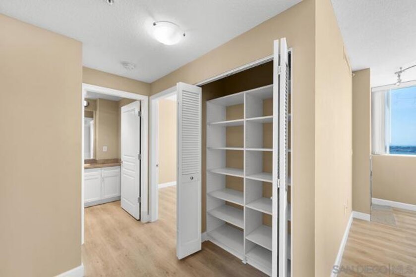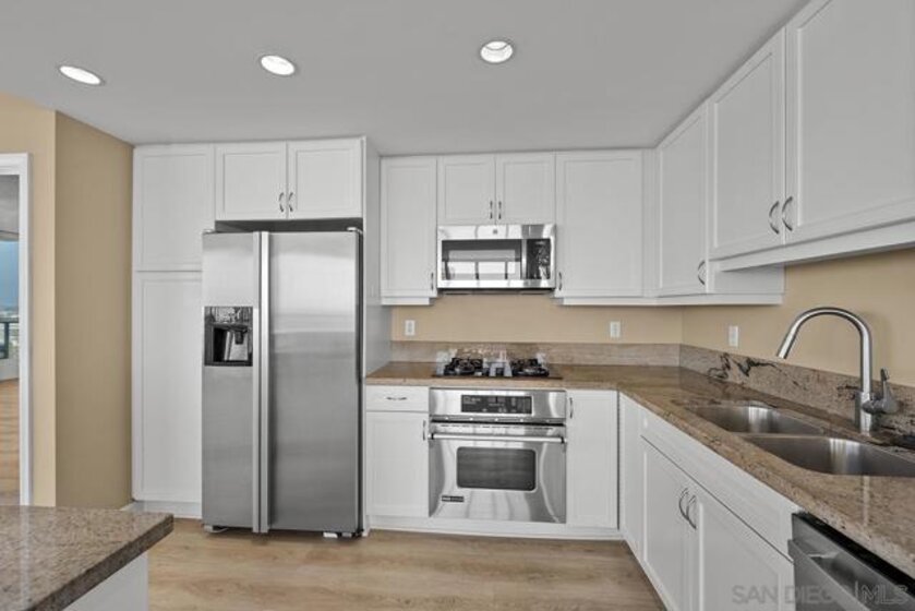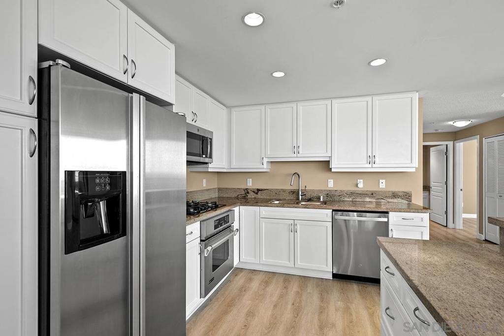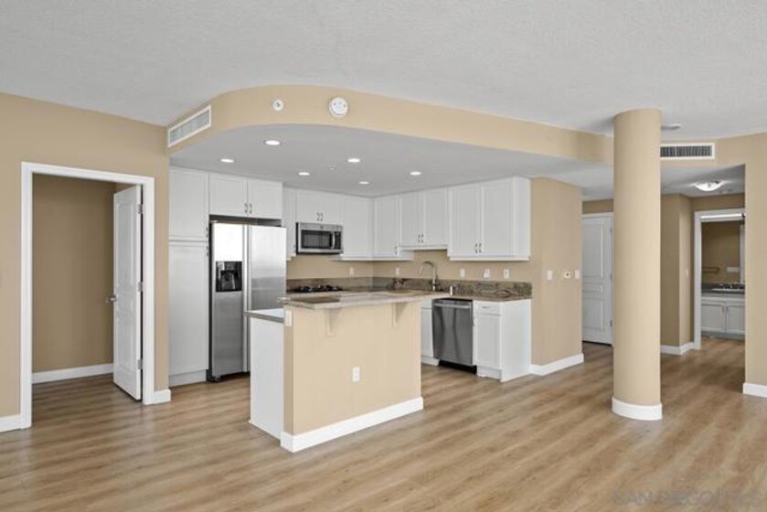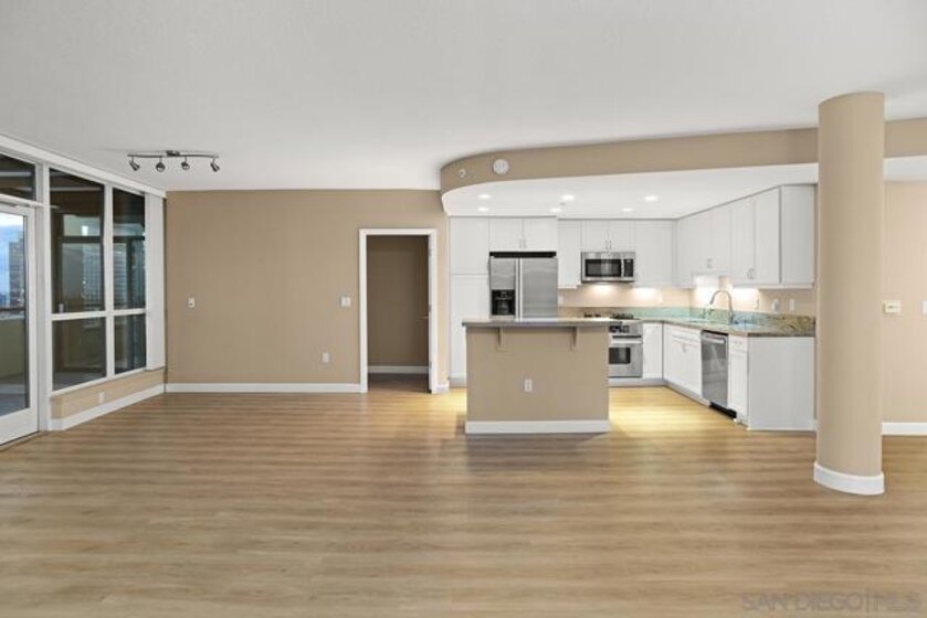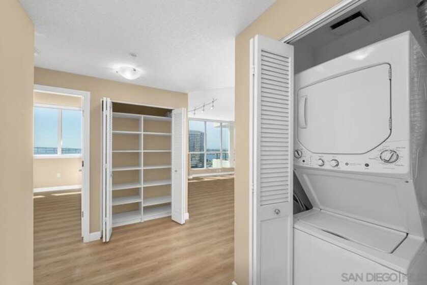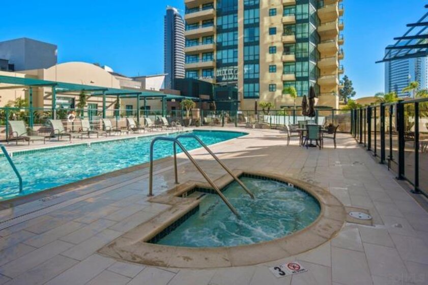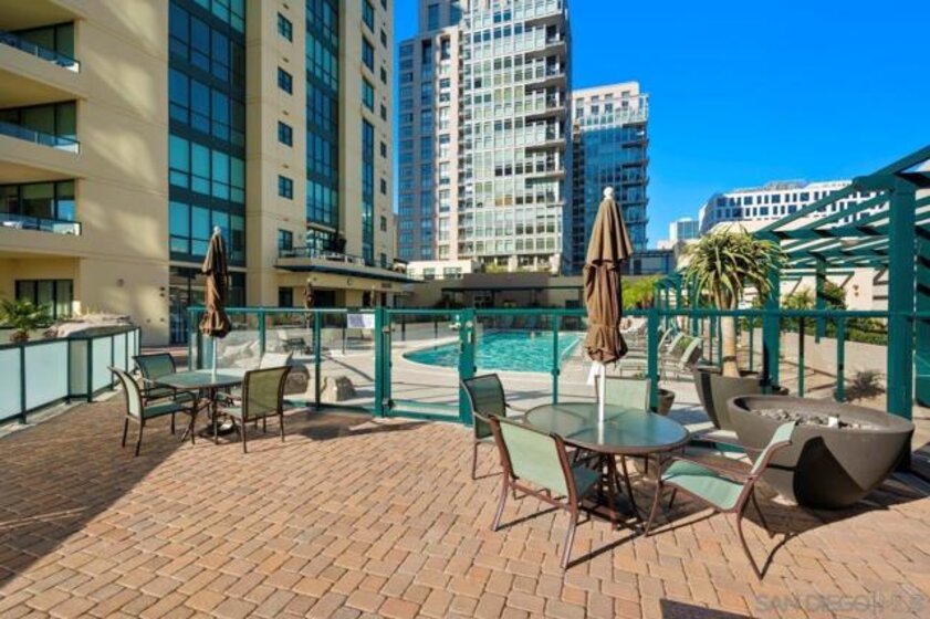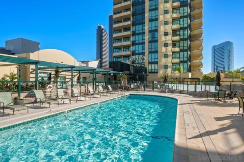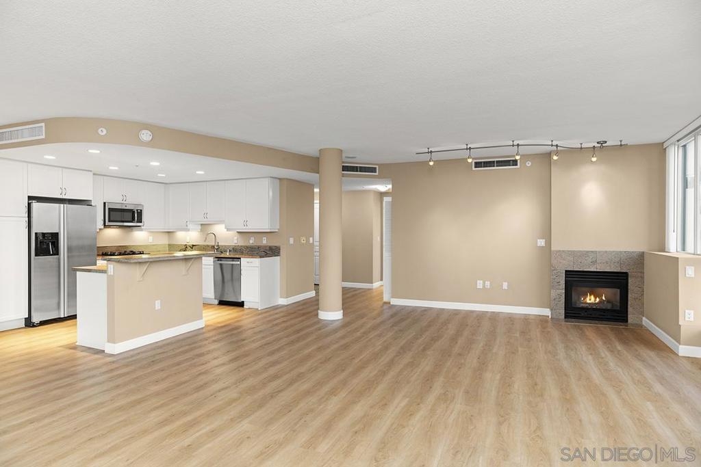 Few addresses in Downtown San Diego deliver this kind of perspective. Positioned on the 18th floor of Horizons, this southwest corner residence offers sweeping views of the bay, ocean, Point Loma, and Coronado that stretch as far as the eye can see. Whether you're watching sailboats drift across the water or the city lights come alive at dusk, the scenery here changes by the hour and never gets old. Three rare balconies - one measuring 25x10 - are among the home’s defining features, accessible from nearly every room, including the primary bedroom, and offering effortless access to breathtaking views. Floor-to-ceiling windows fill the open-concept living space with natural light throughout the day, while easy-care flooring and a fireplace create a warm, grounded atmosphere. The well-appointed kitchen features stainless appliances, generous cabinetry, and recessed lighting, a setup that works equally well for quiet weeknight dinners and larger gatherings. The primary suite connects to the main balcony and has its own private outdoor space, a rare bonus at this level. The ensuite bath includes dual vanity, soaking tub, and step-in shower. The second bedroom functions beautifully as a guest room or a dedicated home office with an inspiring backdrop. Two side-by-side parking spaces near the elevators and a storage unit complete the package. This is Marina District living at its finest, where the views are genuinely part of the lifestyle. The Horizons boasts an unbeatable location in the Marina District, placing you steps from the New Children’s Museum, the scenic Martin Luther King Jr. Promenade, and Seaport Village. And with both a children's park and a dog park right behind the community, fun is always within easy reach for kids and furry friends alike. Resort-style amenities include a pool, spa, fitness center, concierge, security, billiard room, conference room, and guest parking. Convenience is built in, with an array of retailers just an elevator ride away—a bank, tanning salon, dry cleaners, Postal Annex, and a coffee/sandwich shop. Plus, you're within walking distance of bus and trolley lines, top-rated restaurants, shopping, and a 24-hour Ralphs Signature Market just around the corner.