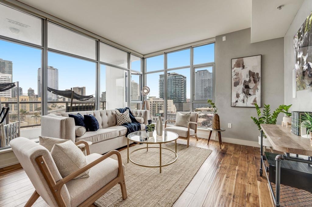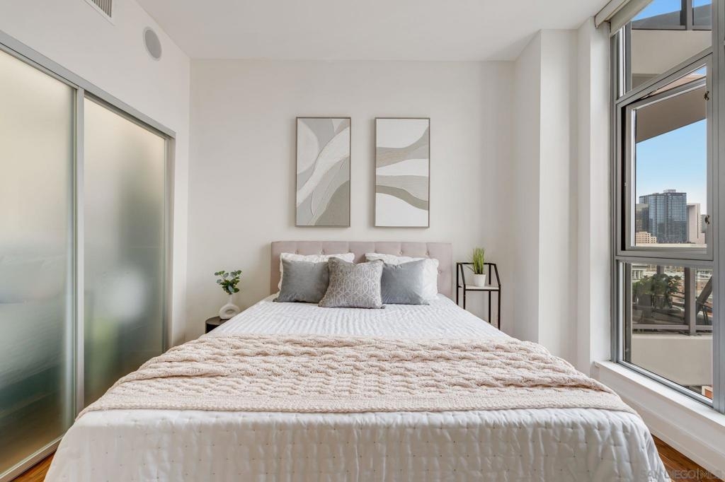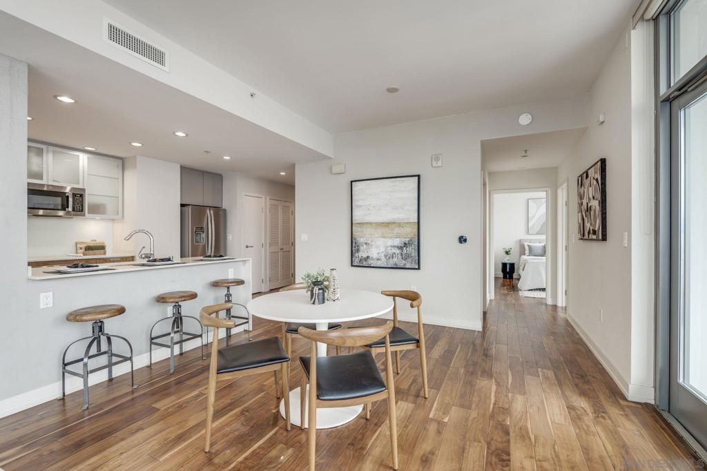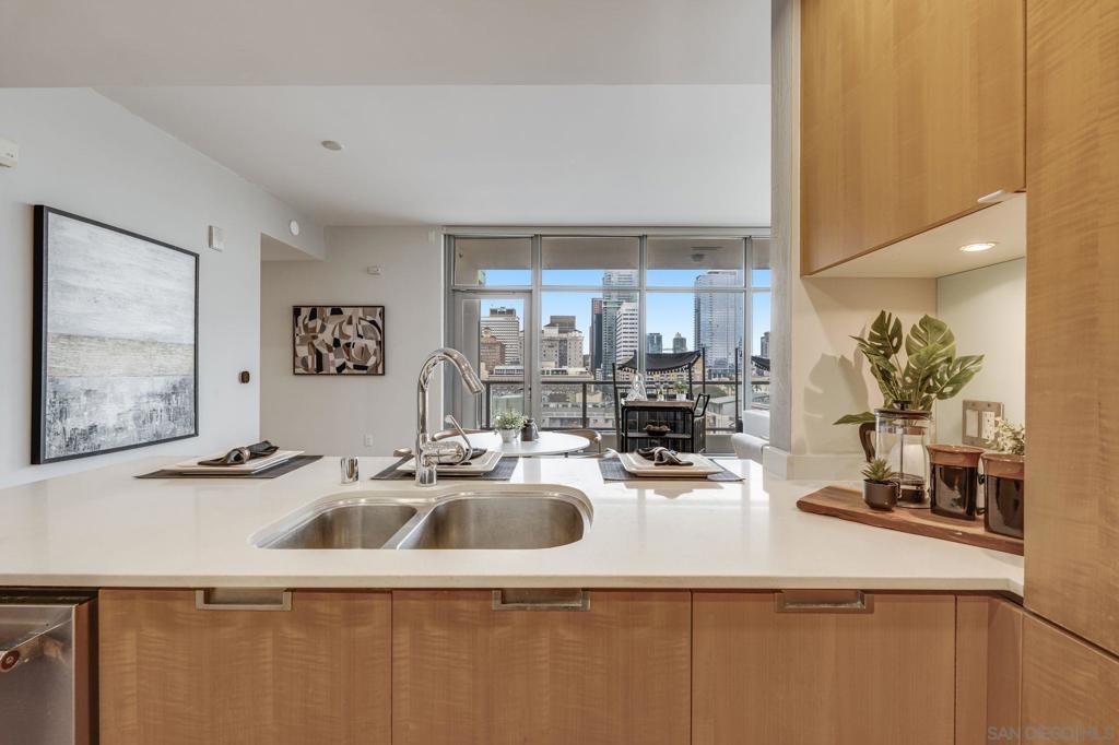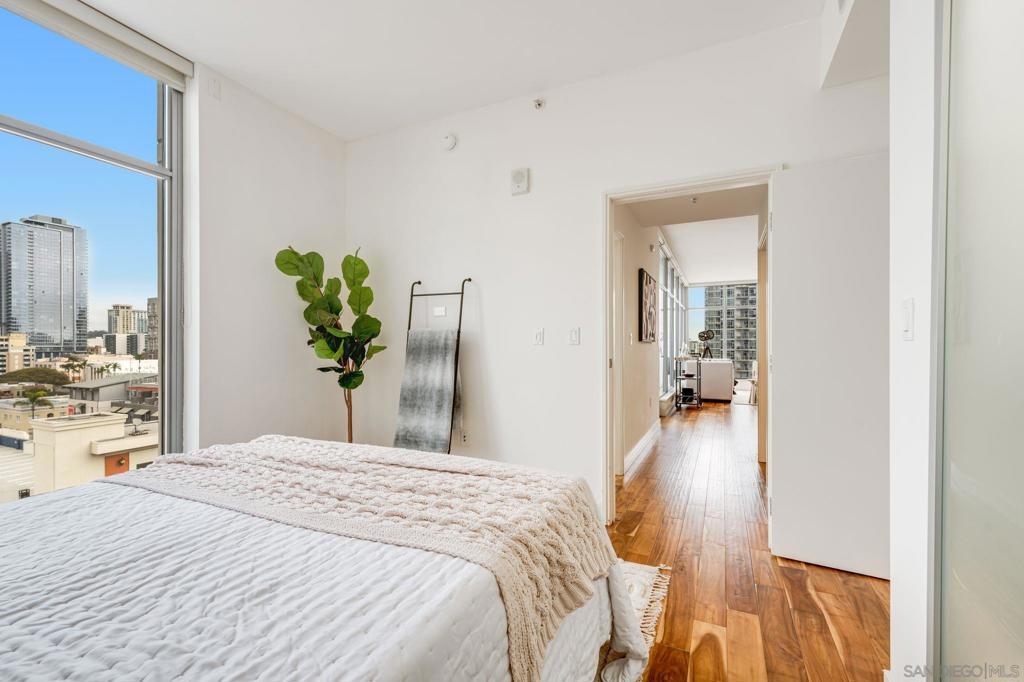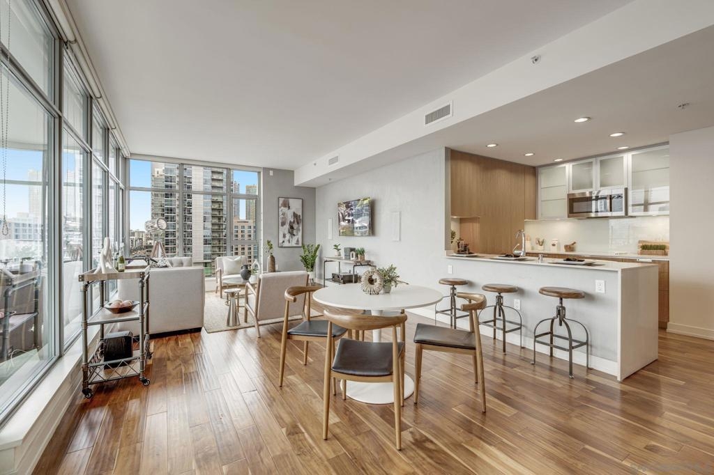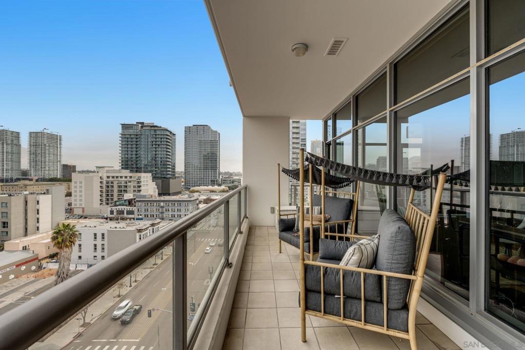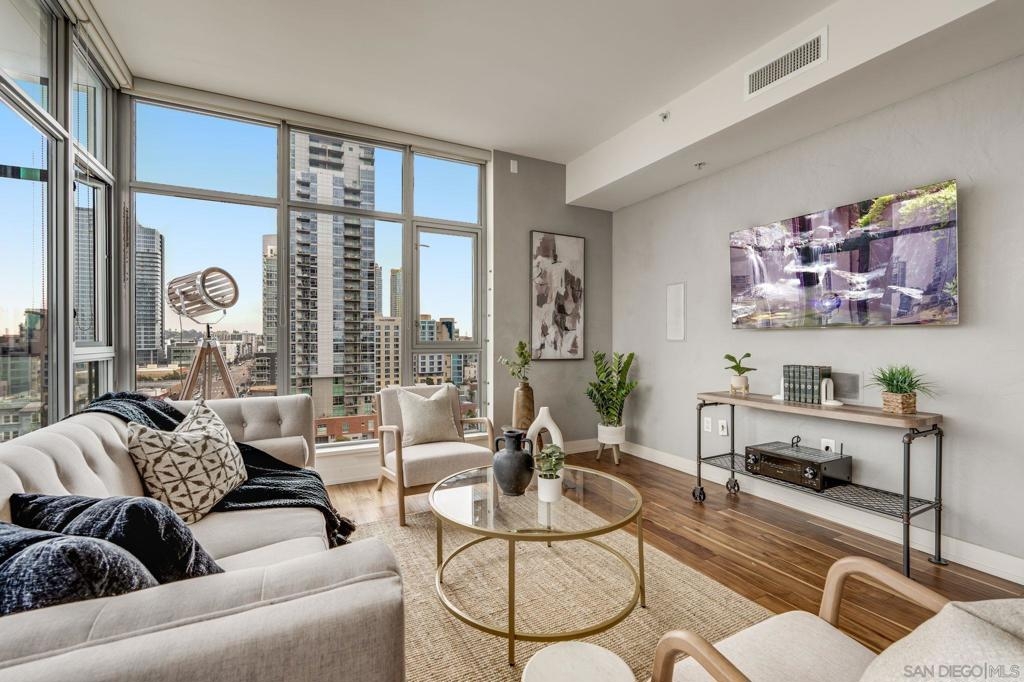 Incredible opportunity in East Village! This is Alta’s most coveted floor plan—boasting an open-concept layout, walls of glass, and sweeping panoramic city views. Step out onto the oversized terrace that seamlessly extends your living space, perfect for entertaining or relaxing above the vibrant energy of Downtown San Diego. This sleek 2-bedroom, 2-bath condo is thoughtfully upgraded with hardwood floors, a modern European-style kitchen, custom sound system, and convenient in-unit laundry. Located in a contemporary high-rise, residents enjoy secured access, two tandem parking spaces, and additional storage in the garage. The exclusive Alta Community, just 2 blocks from Petco Park, vibrant Gaslamp Quarter, East Village, Little Italy, Convention Center, and an array of over 100 exceptional restaurants. The Alta offers unparalleled convenience, security and amenities including a fully equipped gym, pool, community room, and one of the lowest HOA communities downtown. This is urban living at its finest. Seller willing to pay Buyer's first year of HOA dues for accepted offer. Expires 8/1/25.
